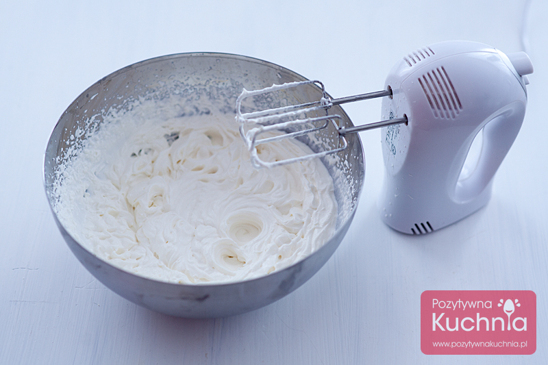 - Ubijamy śmietankę w misce przez 30 sekund na najniższych obrotach miksera (dotyczy to mikserów o 3-stopniowej regulacji prędkości).
