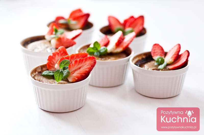 - Za pomocą gazowego palnika przypalam cukier do momentu jego skarmelizowania.UWAGA 2: Foremki można wstawić na 2-3 minuty na najwyższą półkę piekarnika i przypiec od góry w temperaturze 180 °C.