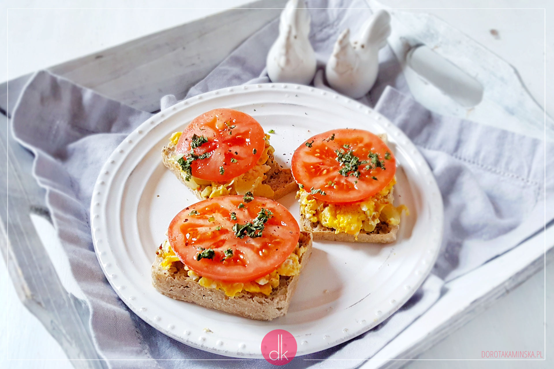 Kanapki z jajecznicą to śniadanie, które po prostu musiałam Wam pokazać. Okazało się, że nie każdy tak jada, a przecież są pyszne! Można podać jajecznicę na talerzu, ale ja wtedy i tak część zjadam widelcem, a część nakładam na chleb. Polecam spróbować dorzucić na spód wędzonego łososia, do tego rukolę lub bazylię i jajecznicę z cebulą. Na wierzch obowiązkowo pomidor. Jakie to jest dobre!