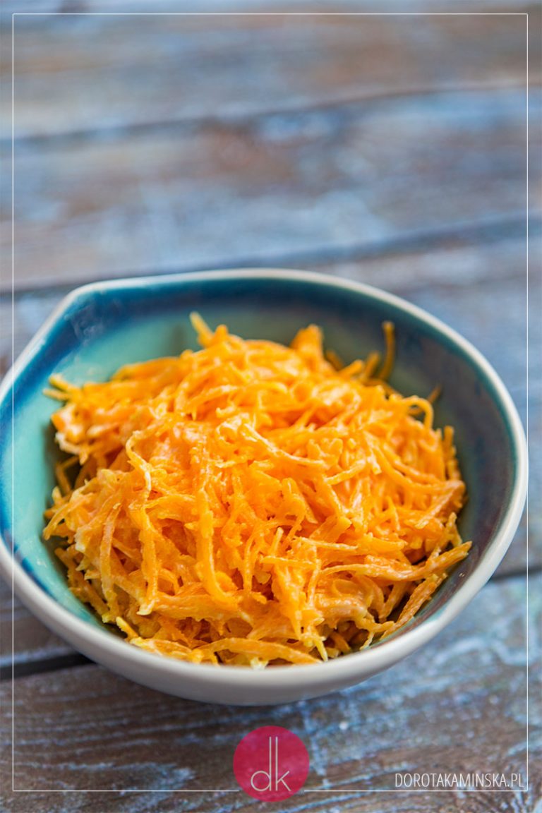 Najprostsza wersja to starcie marchwi na tarce o drobnych oczkach. Potem doprawienie solą i pieprzem i wymieszanie z odrobiną jogurtu naturalnego lub śmietany. Zaproponuję Wam jednak jej wyjątkową wersję, z sosem winegret lub śmietankowo-jogurtowym, z dodatkiem jabłka lub ananasa. Do wyboru :).