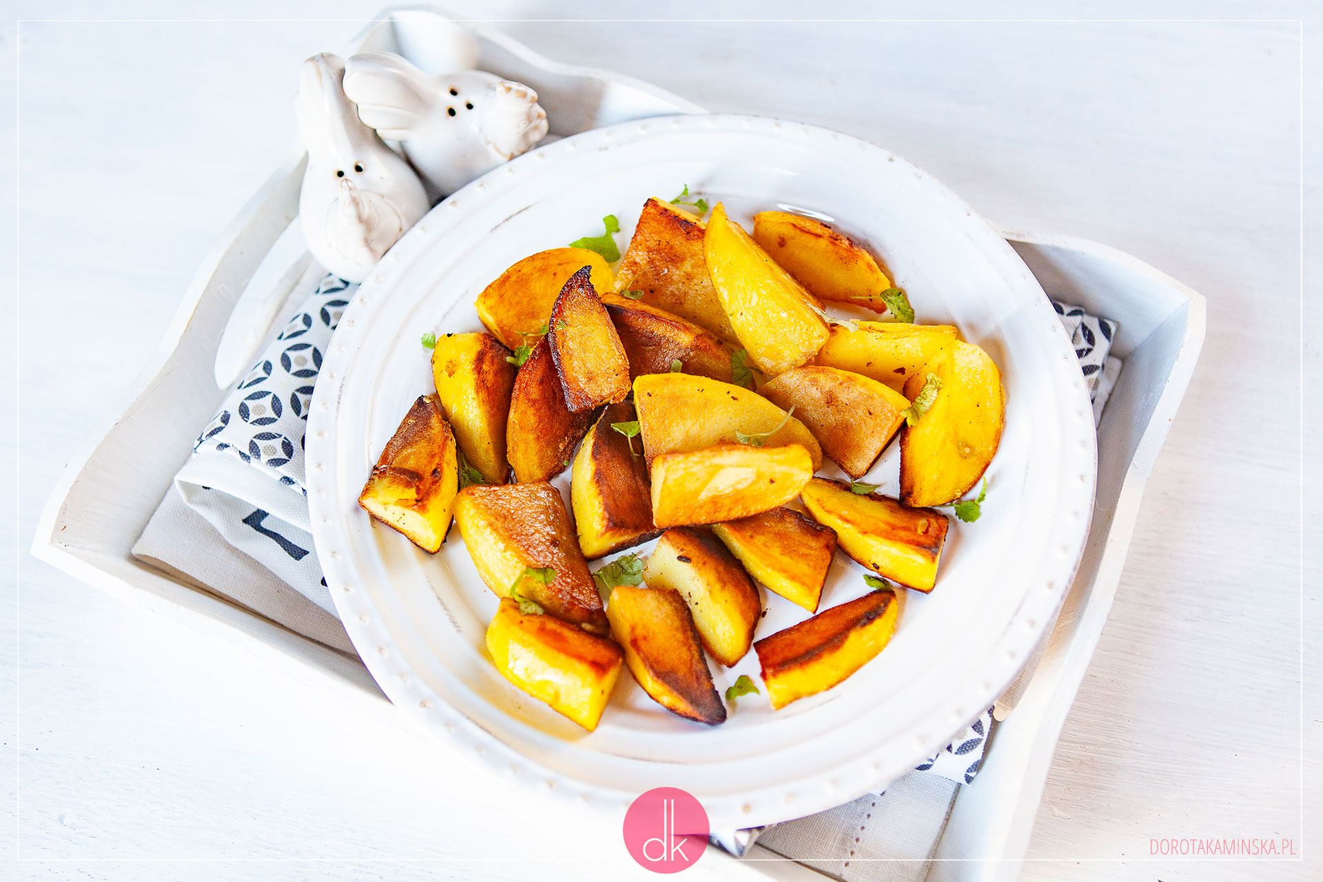 Ziemniaki wkładam do garnka z lekko osolonym wrzątkiem i gotuję, pod przykryciem, przez 5 minut. Odcedzam na durszlaku i zostawiam na kilka minut do odparowania.Opcjonalnie ziemniaki po odcedzeniu i odparowaniu można posypać mąką, potrząsając dokładnie durszlakiem, żeby dokładnie rozprowadzić ją po całej powierzchni.