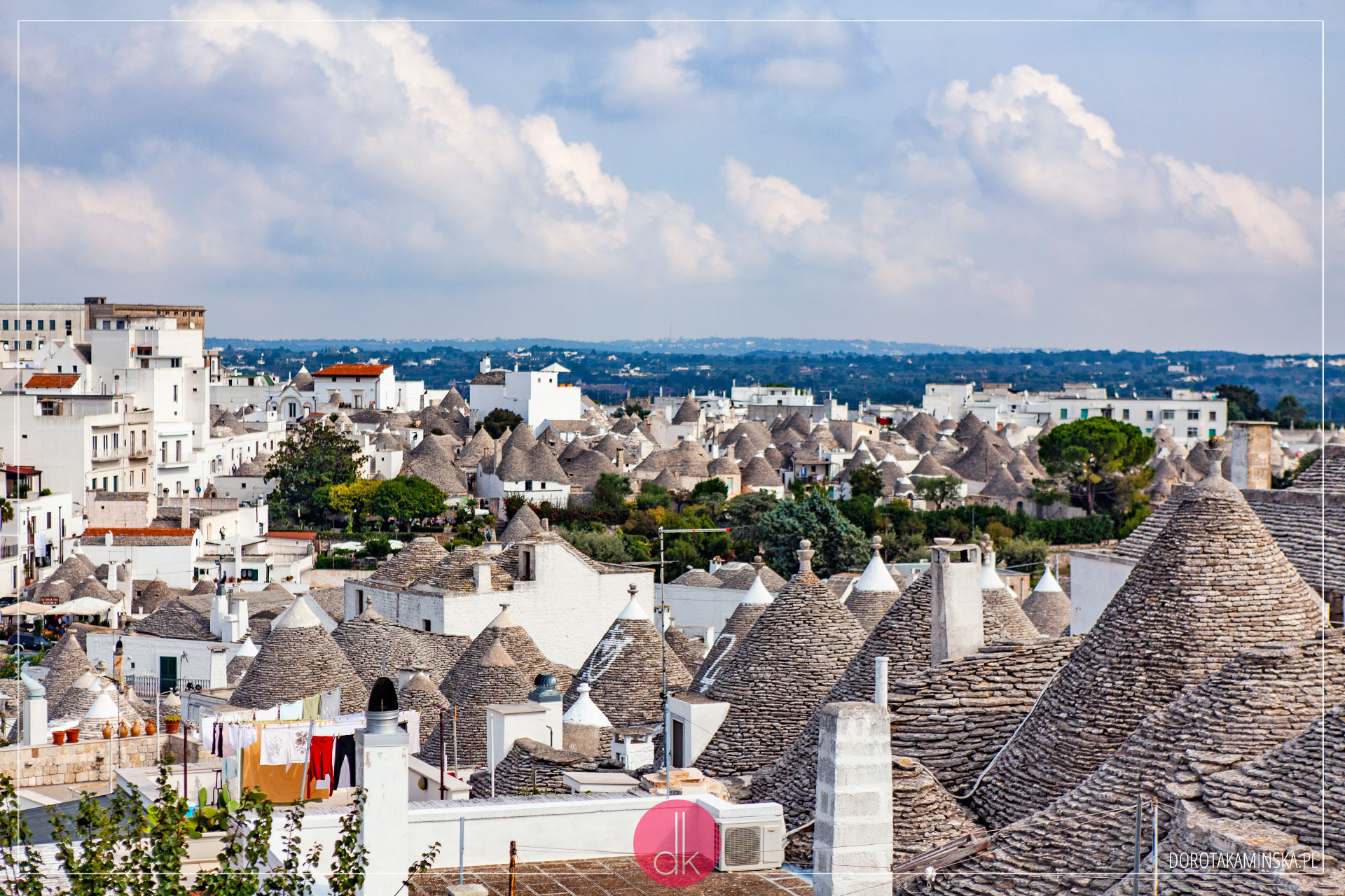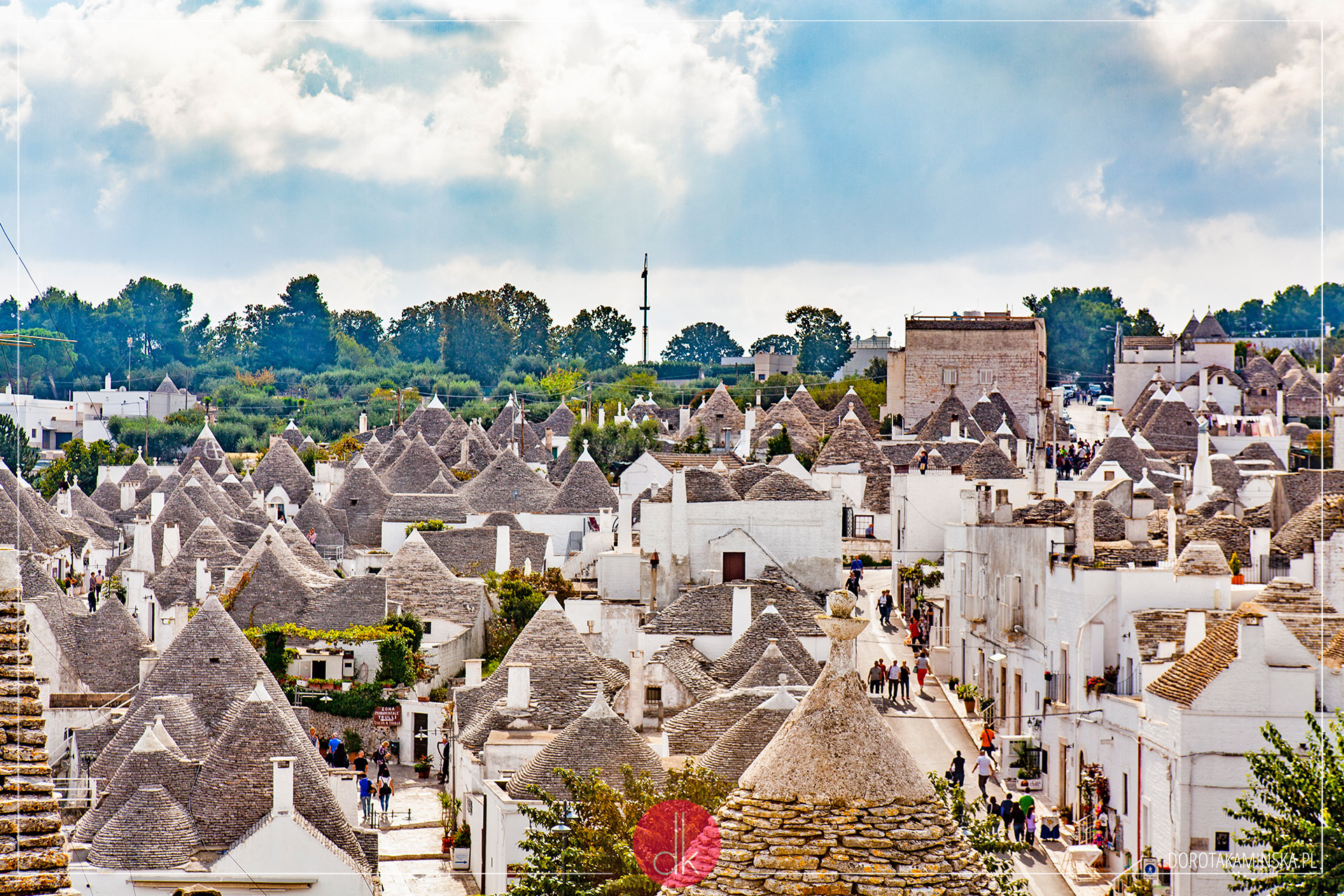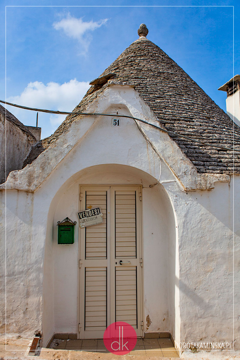 Z Monopoli szybko ruszyliśmy do Alberobello. To obowiązkowy punkt do odwiedzenia! Największa liczba domków trulli z charakterystycznymi dachami. Powstawały, ponieważ ich właściciele chcieli uniknąć płacenia podatków ;). Dziś są słynną atrakcja turystyczną Apulii i pełno tutaj turystów, knajpek oraz sklepów z pamiątkami. Ale można też znaleźć trochę spokoju w bocznych, wąskich uliczkach i pospacerować w ciszy. A nawet kupić taki domek!