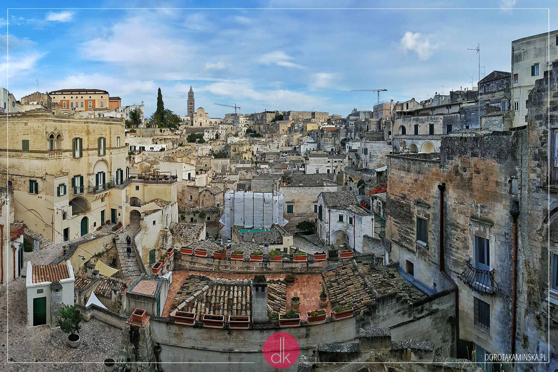 Po południu dotarliśmy do Matery. To miejscowość ze słynnym skalnym miasteczkiem Sassi (najlepiej zachowane fragmenty znajdują się przy remontowanej wieży widocznej na zdjęciu), a przy okazji dawny plan filmowy „Pasji” Mela Gibsona. Zwiedzanie zaczęliśmy od starego centrum.