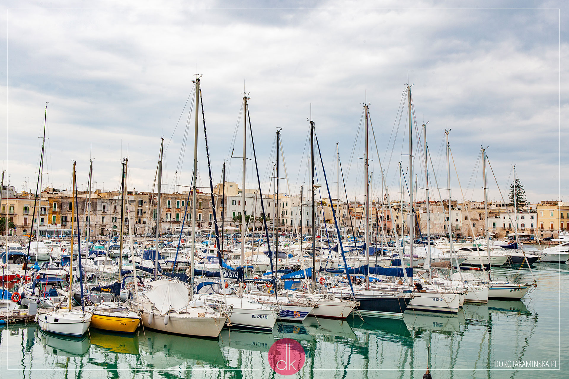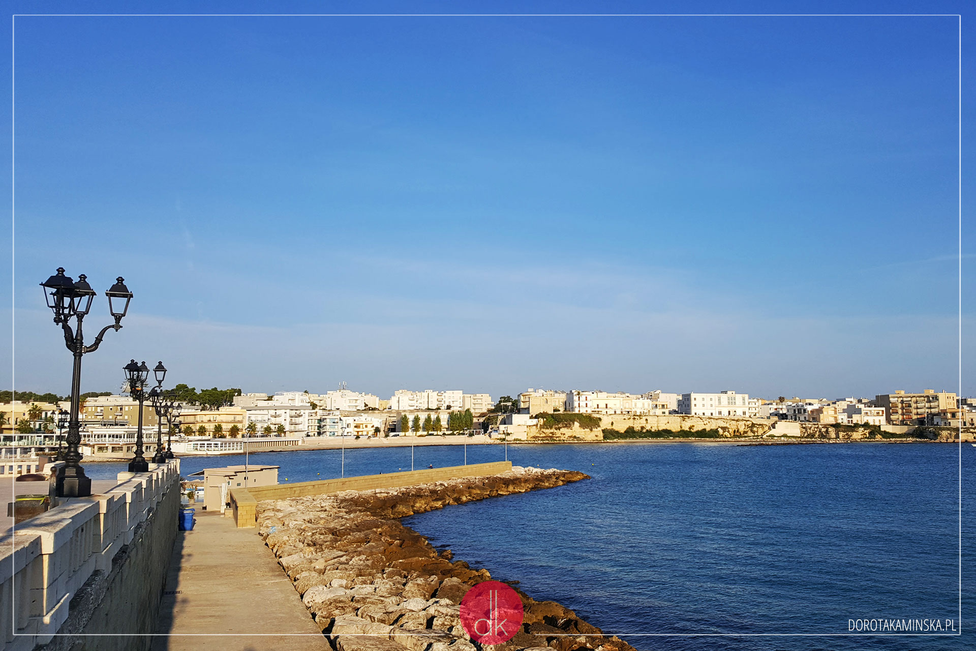 Auto zaparkowaliśmy za restauracjami, przy tarasie widokowym widocznym po prawej stronie poniższego zdjęcia. Potem przeszliśmy przez widoczny na zdjęciu mostek i uliczkami. Nie wiedząc do końca dokąd dokładnie idziemy, dotarliśmy do miejsca, z którego zrobiłam tę fotografię. Ten widok możecie też mieć u siebie na ścianach – zapraszam do obejrzenia moich plakatów z Apulii :).