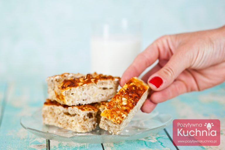 - Wystudzone ciasto kroimy nożem w kształt batoników. Można zawinąć każdy z osobna w papier śniadaniowy.