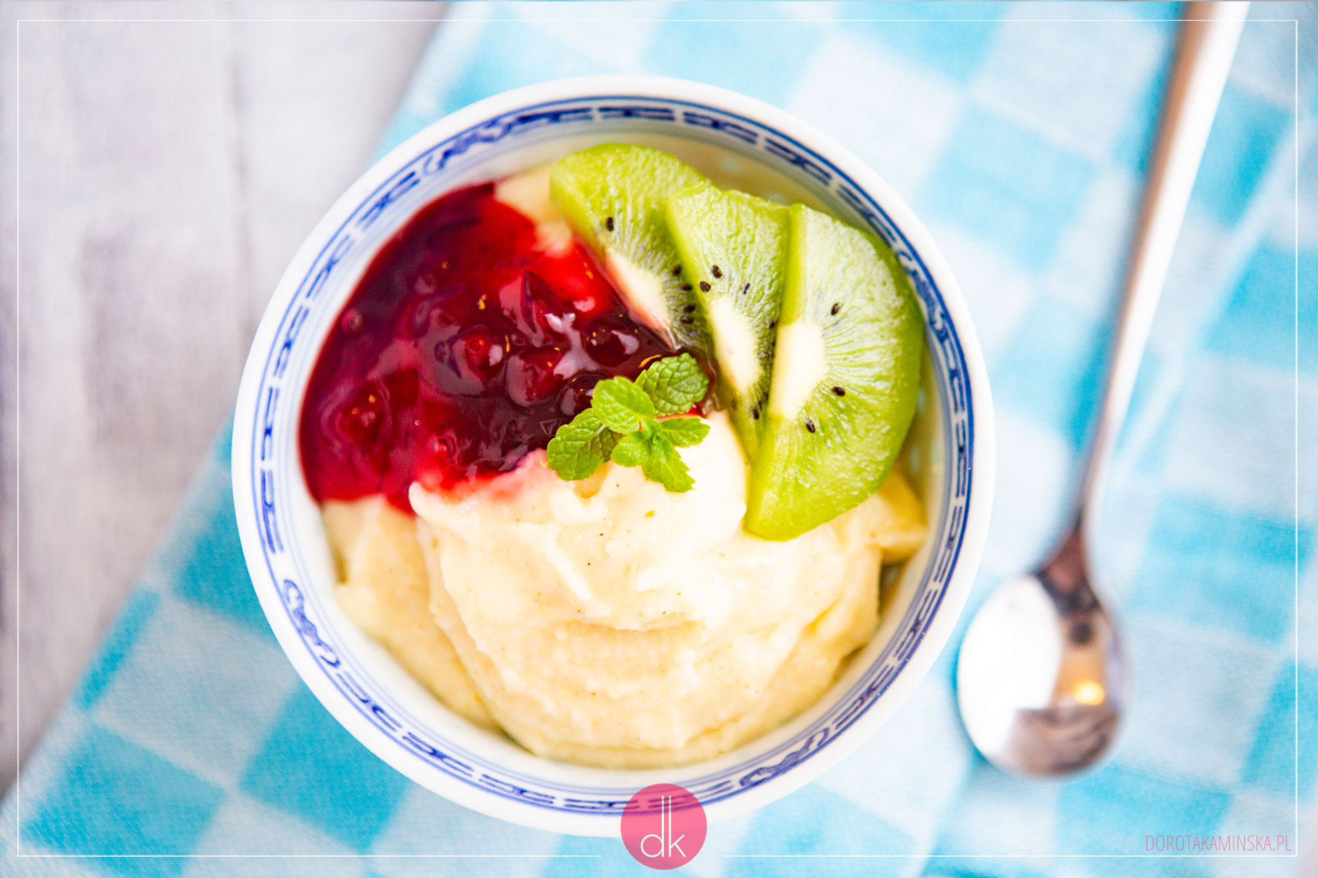 Podajcie budyń jaglany z ulubionymi owocami lub przetworami. Można oczywiście polać go polewą czy udekorować bitą śmietaną kokosową. Posypcie bakaliami lub kakao… Choć jest to budyń bez nabiału, to nadal macie mnóstwo możliwości :).