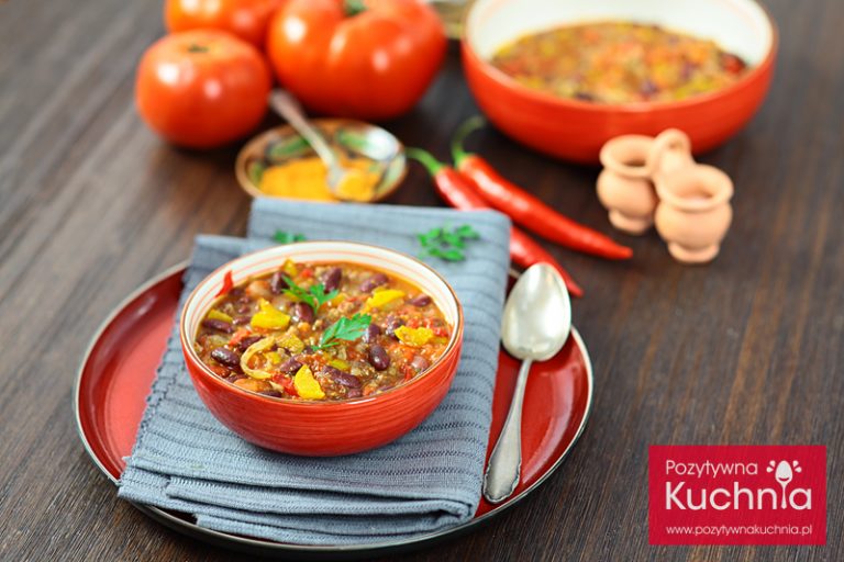 Kolorowy Meksyk w kuchni daje możliwość wielu eksperymentów, z dodatkiem czerwonej fasoli, ostrej papryki, nachos i tortilli meksykańskich. Gęsta, ostra, aromatyczna zupa, choć z gorącego Meksyku, podczas jesiennej pluchy jest świetnym daniem do postawienia na polskim stole. Chili con carne: raz, dwa, trzy… i gotowe, zwłaszcza jeśli w domu jest zapas czerwonej fasolki z puszki. Wokół unosi się zapach kminku rzymskiego i kolendry, a na stole gości apetyczne, kolorowe danie.