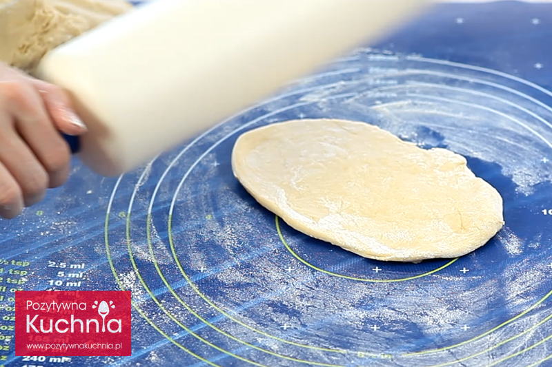 [..YouTube..] można podsypywać dodatkową mąką, ale wtedy straci na miękkości. Tak jak pokazuję w filmie – odrywam kółko ciasta od stolnicy i rozciągam palcami przed nałożeniem farszu 🙂
