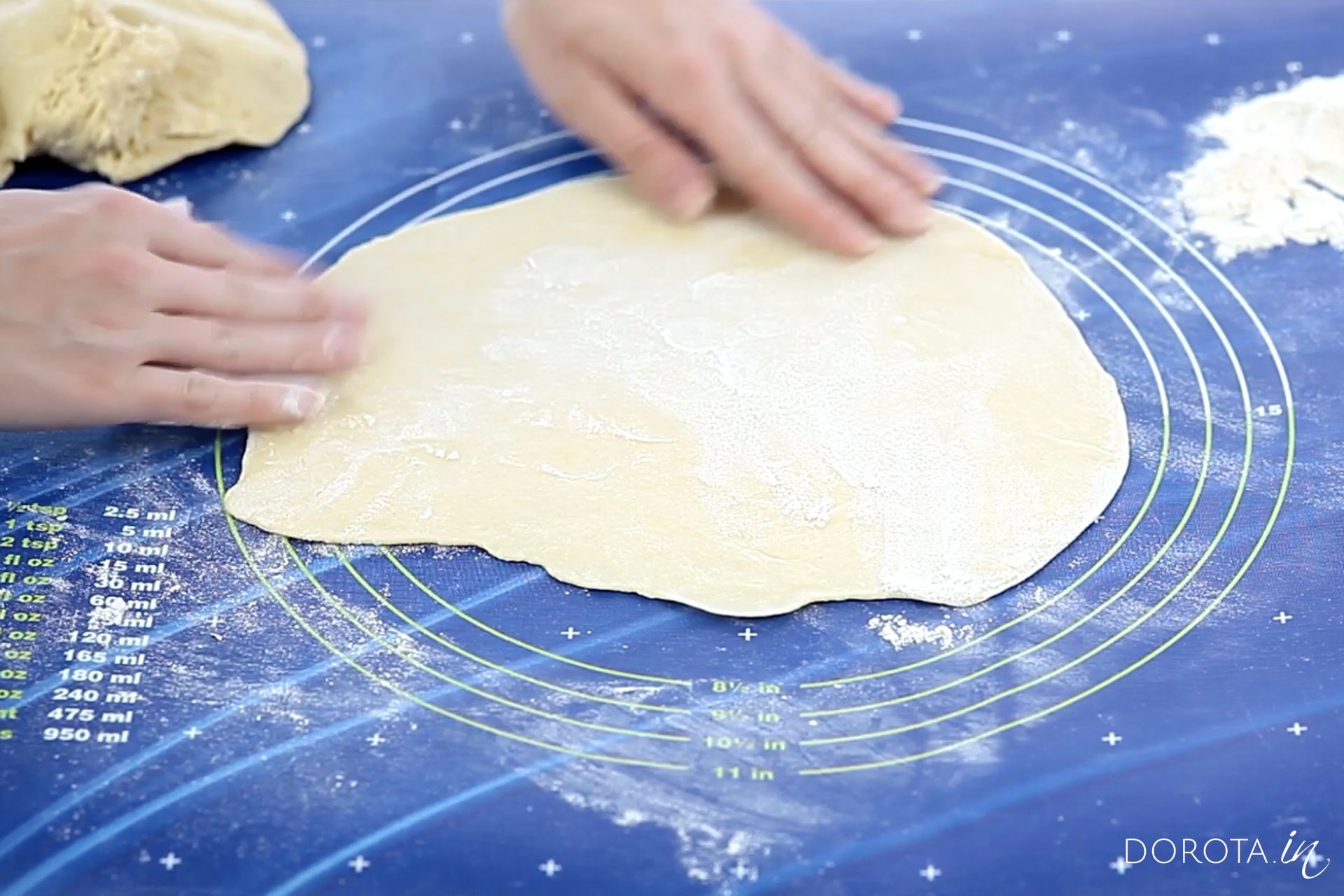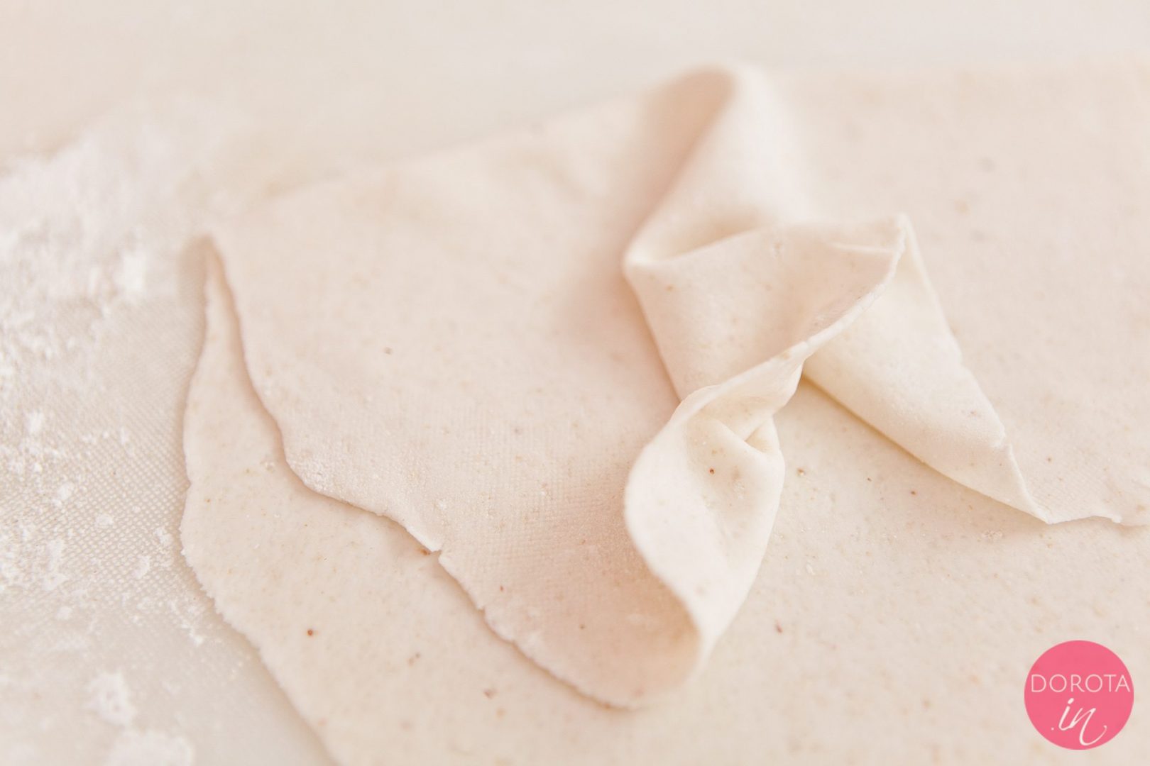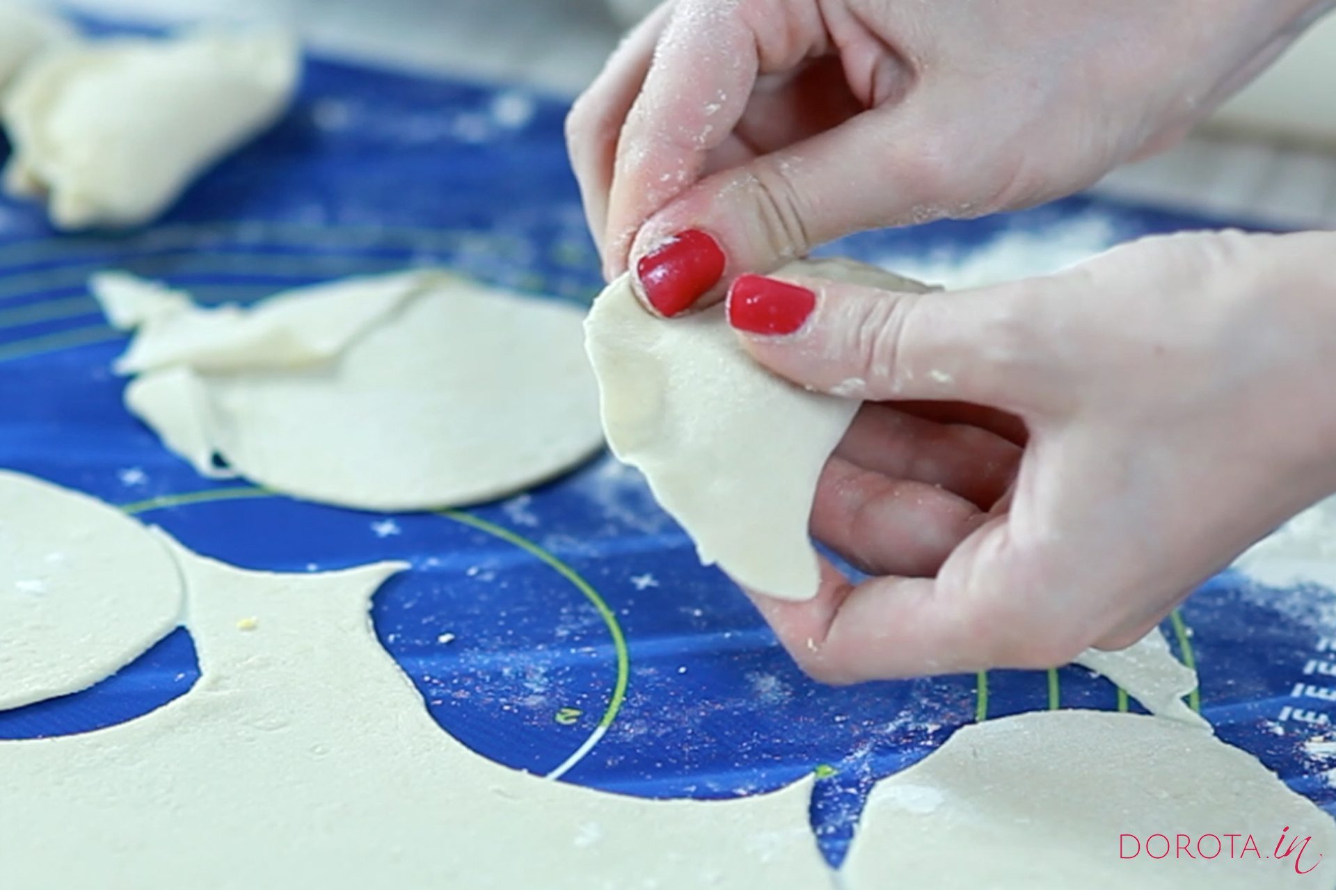 [..YouTube..] @TheUnboxinglive można podsypywać dodatkową mąką, ale wtedy straci na miękkości. Tak jak pokazuję w filmie – odrywam kółko ciasta od stolnicy i rozciągam palcami przed nałożeniem farszu 🙂