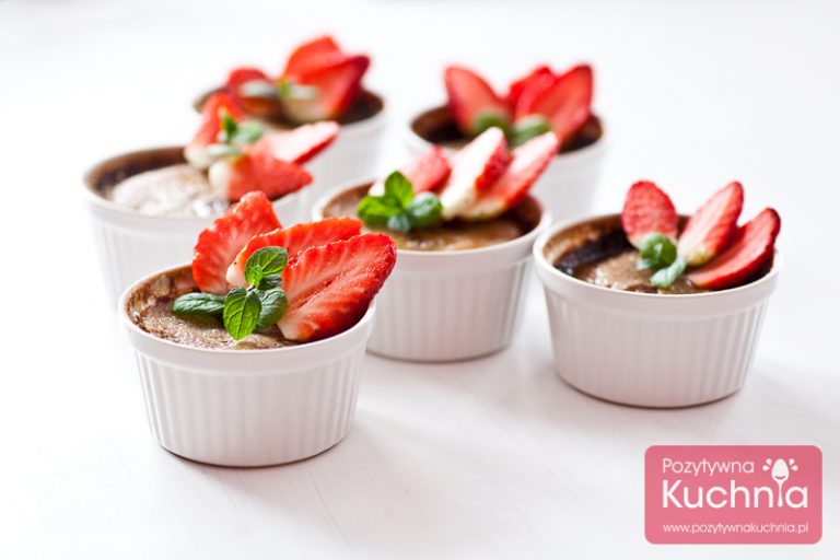 - Przelewam masę do foremek i wstawiam je do żaroodpornego naczynia wypełnionego wodą (poziom wody powinien sięgać ¾ wysokości foremek). Wstawiam do piekarnika i piekę przez 50-60 minut (krem zetnie się w foremkach, ale swoją ostateczną konsystencję uzyska dopiero po wystudzeniu).
