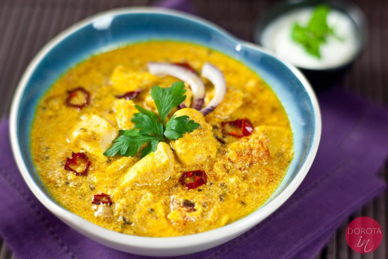 Curry z kurczaka, aromatyczne, pachnące mieszanką kolendry, gorczycy, kardamonu, goździków i kuminu to doskonała potrawa na elegancką kolację lub niedzielny obiad w gronie znajomych i przyjaciół. Można podać je z dodatkiem ugotowanego ryżu lub indyjskiego pieczywa, np. chleba naan.