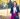 Czerwony płaszcz i bluzka w paski z dżinsami – zestaw