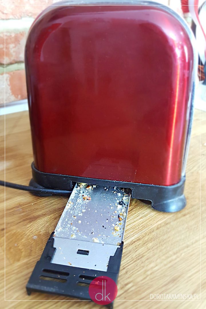 Zdarza się niestety, że pojedyncze okruchy i tak wypadają poza szufladkę i czasami trzeba odsuwać toster i czyścić pod nim blat. Co jakiś czas konieczne będzie oczywiście odłączenie tostera od prądu, odwrócenie spodem do góry i konkretne potrząsanie nad zlewozmywakiem. Warto też spróbować od czasu do czasu czyścić środek, bo nie wszystko regularnie wypali się samo.