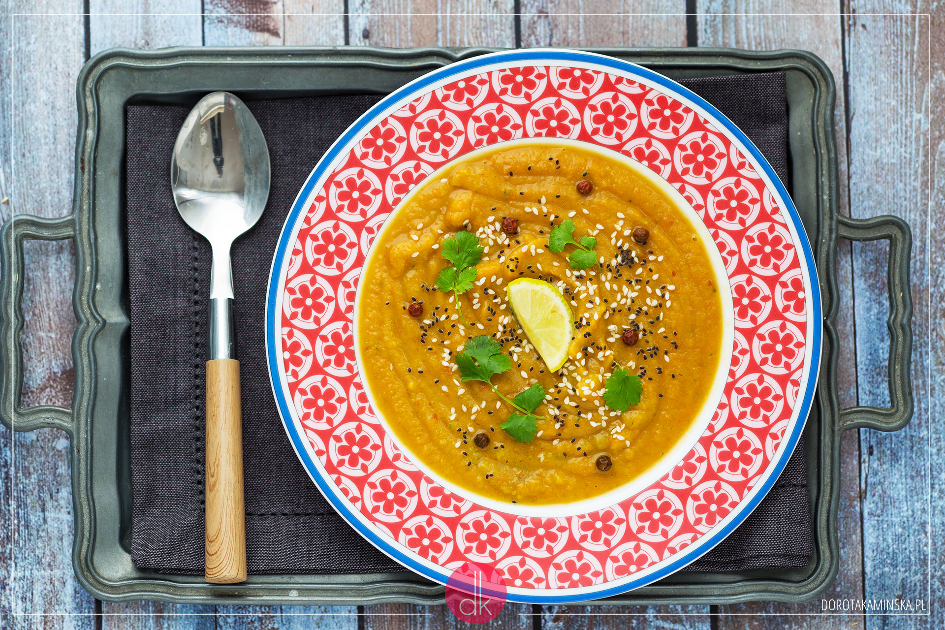 - Serwuję dhal posypany świeżą kolendrą, sezamem i odrobiną pieprzu.