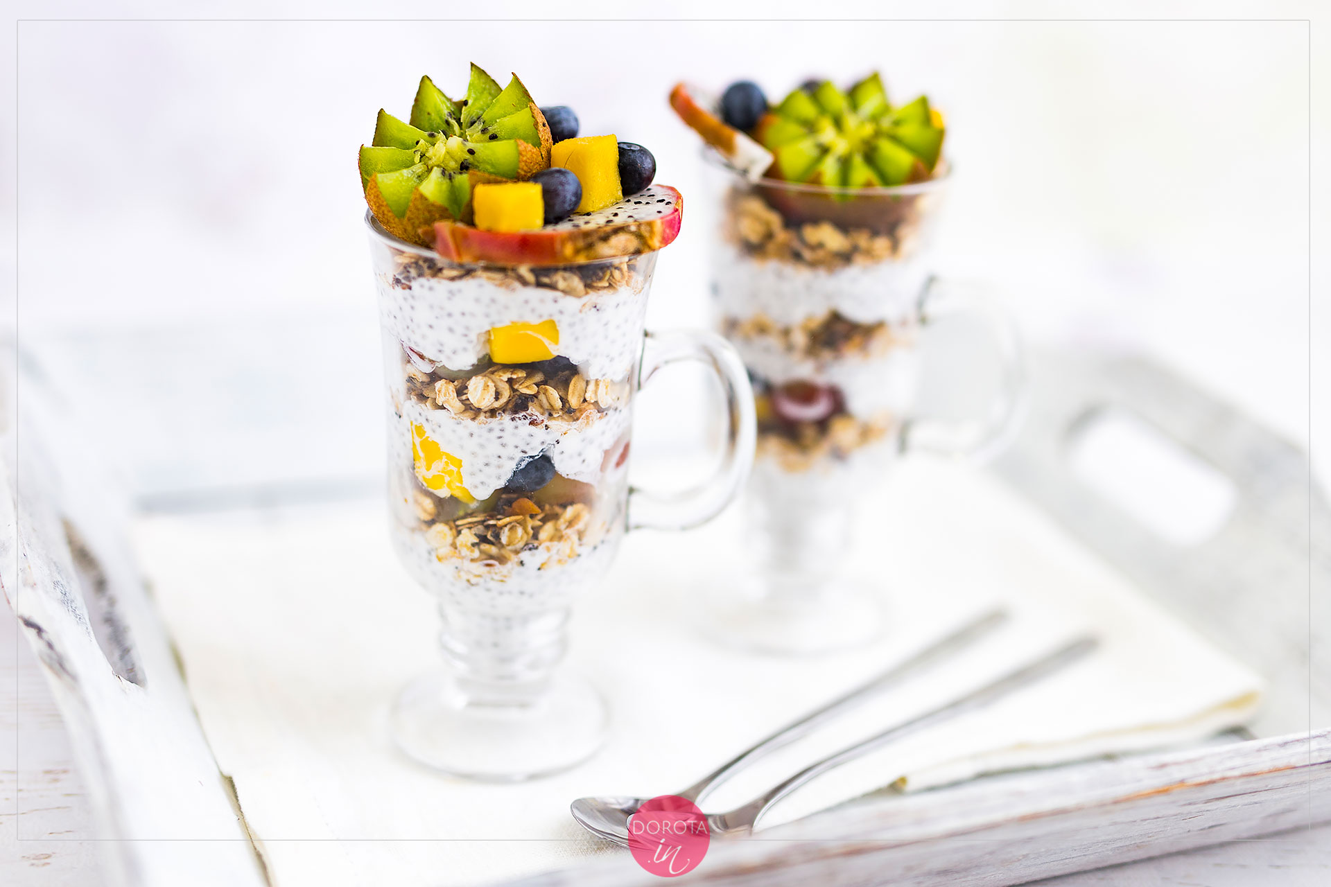 Deser z chia czyli nasionami szałwii hiszpańskiej. Są świetne jako dodatek do słodkich deserów. Pomimo że zawierają co prawda mniej kwasów omega-3 niż nasze rodzime siemię lniane, są za to łagodniejsze w smaku i łatwiejsze do wykorzystania w przygotowywaniu prostych i zdrowych deserów. Wystarczy zalać je sokiem, mlekiem lub jogurtem i zostawić na ok. 20 minut. Potem, gdy dwukrotnie zwiększą swoją objętość i zagęszczą otaczający je płyn, można serwować lub wykorzystać jako bazę do warstwowych deserów, a nawet ciast. Podane z dodatkiem owoców i granoli to jedna z moich propozycji. Zobaczcie przepis na deser z chia, kolorowy, zdrowy i smaczny, a w dodatku bez cukru.