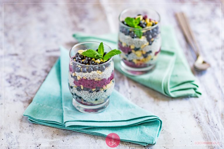 Jest taki deser, który skradł mi serce. Nieważne, jakie dodam do niego owoce, byle tylko bazą było mleko kokosowe wymieszane z nasionami chia i ekstraktem z wanilii. Tym razem efektem przygotowania tej prostej mieszanki jest deser z jagodami, bez cukru i fit, bogaty w korzystne dla zdrowia składniki odżywcze, dlatego będę Was zachęcać do wypróbowania receptury i mam nadzieję, że częściej niż kolorowe desery z galaretek z torebki zagości na Waszych stołach.
