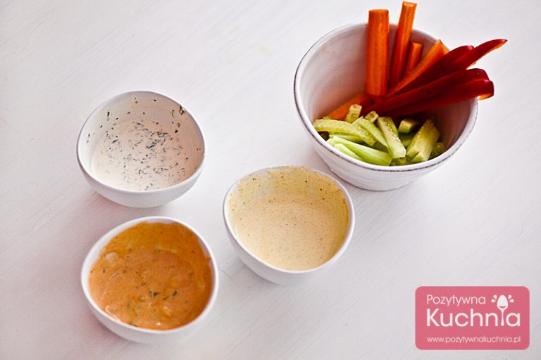 Dipy do warzyw to proste dodatki, które można też wykorzystać do różnych innych przekąsek. Idealnie pasują nie tylko do surowych warzyw pokrojonych w słupki, ale też do pieczonych lub gotowanych ziemniaków, placków ziemniaczanych, nieskomplikowanych sałatek, chipsów, naleśników, a niektórzy lubią nimi polać nawet pizzę. Można eksperymentować z nimi w kuchni, bazując na podstawowej recepturze: tyle samo majonezu i śmietany lub naturalnego jogurtu, odrobina soku z cytryny i dodatki: drobno posiekana cebulka lub czosnek, koperek, mięta, curry, chili… Możliwości jest całe mnóstwo.