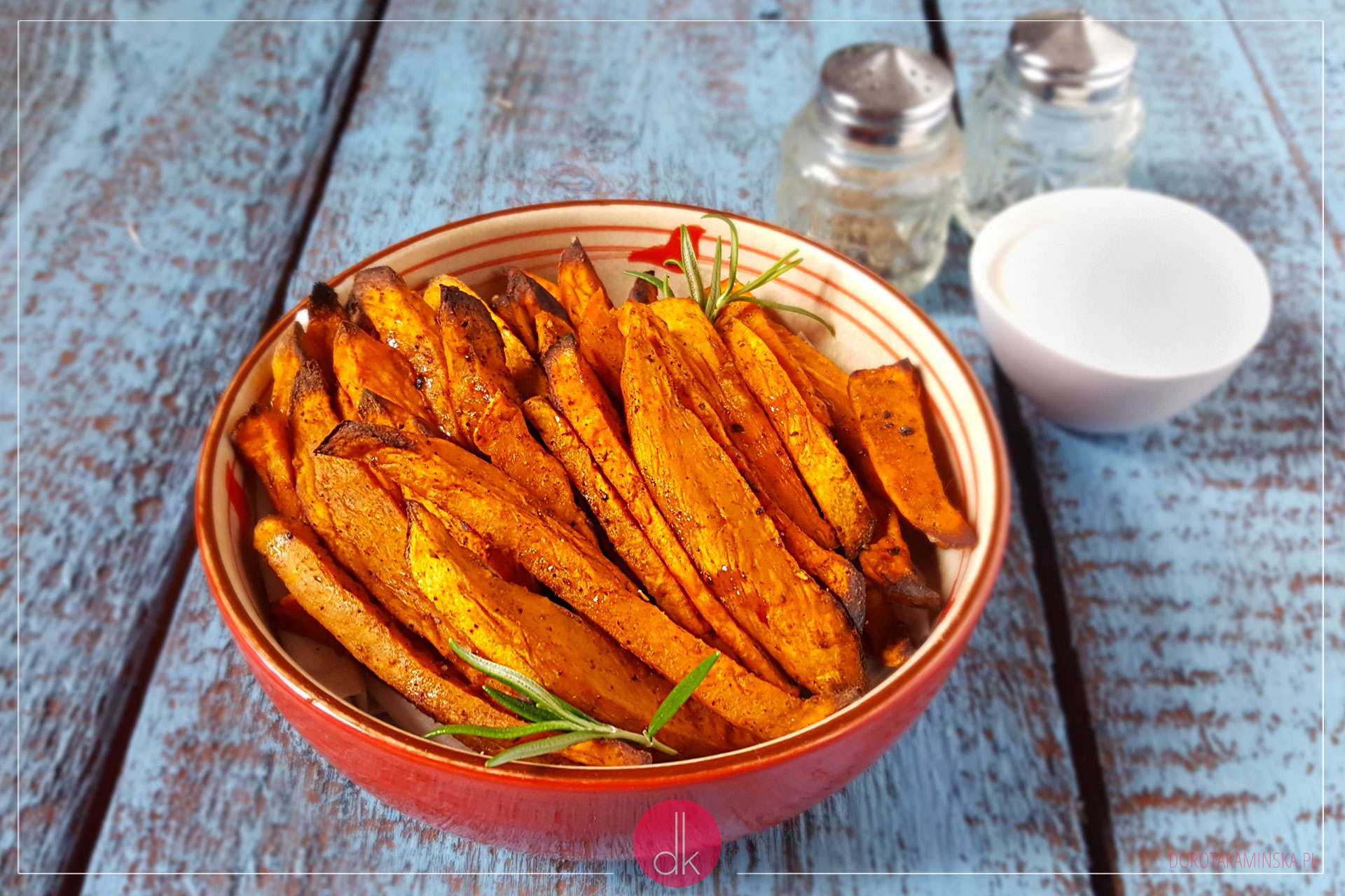 Goszczą na naszym stole w środku tygodnia lub z okazji weekendu. Sprawdzają się świetnie jako zwykły posiłek, potrawa imprezowa oraz również dodatek do obiadu dla nas i gości. Frytki z batatów to kolejna potrawa z piekarnika, która cieszy się naszą sympatią. Z pewnością Was zaskoczy! Cieszę się, że słodkie ziemniaki są od dawna łatwo dostępne w osiedlowych sklepach spożywczych, dyskontach i hipermarketach.
