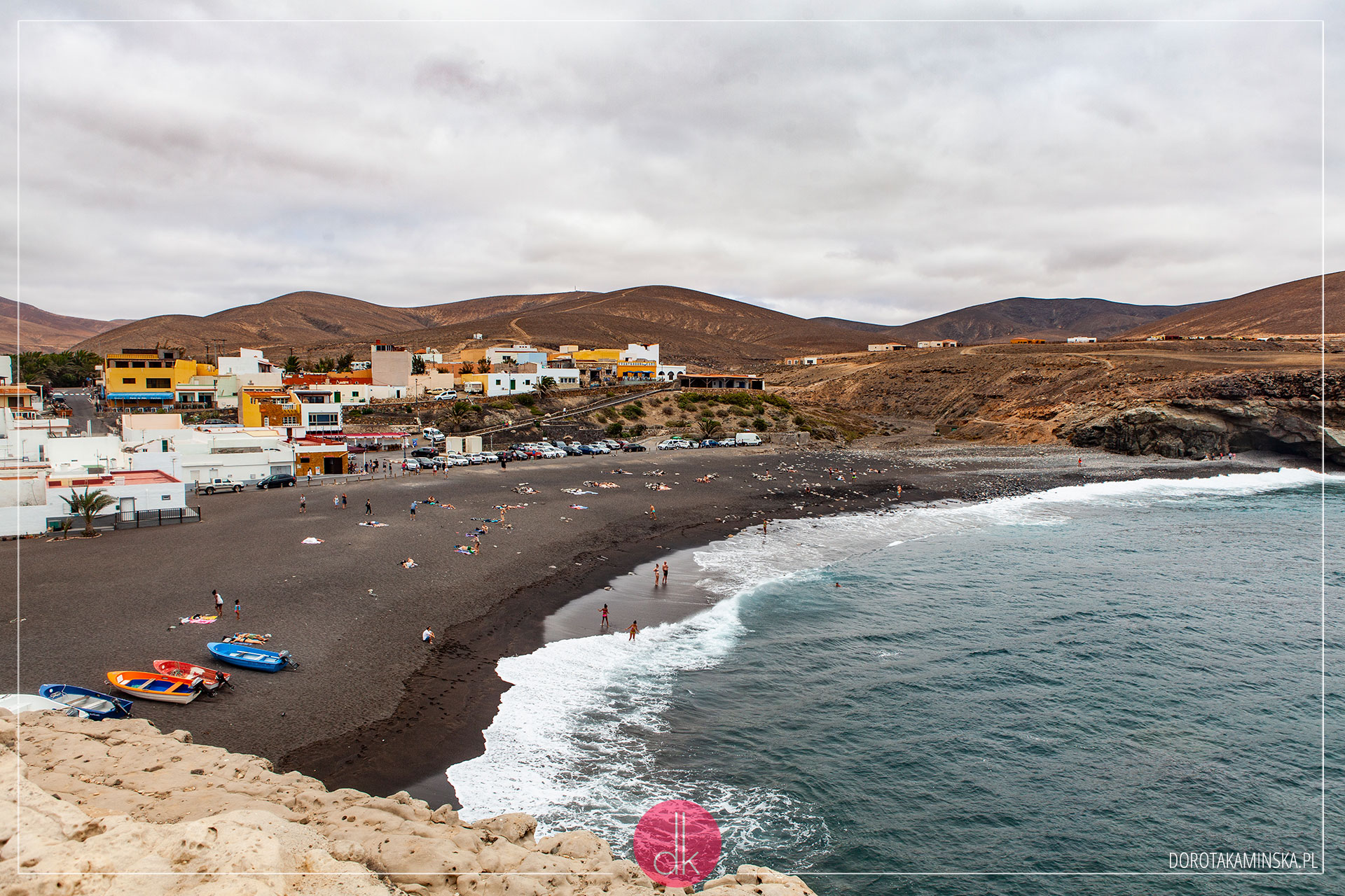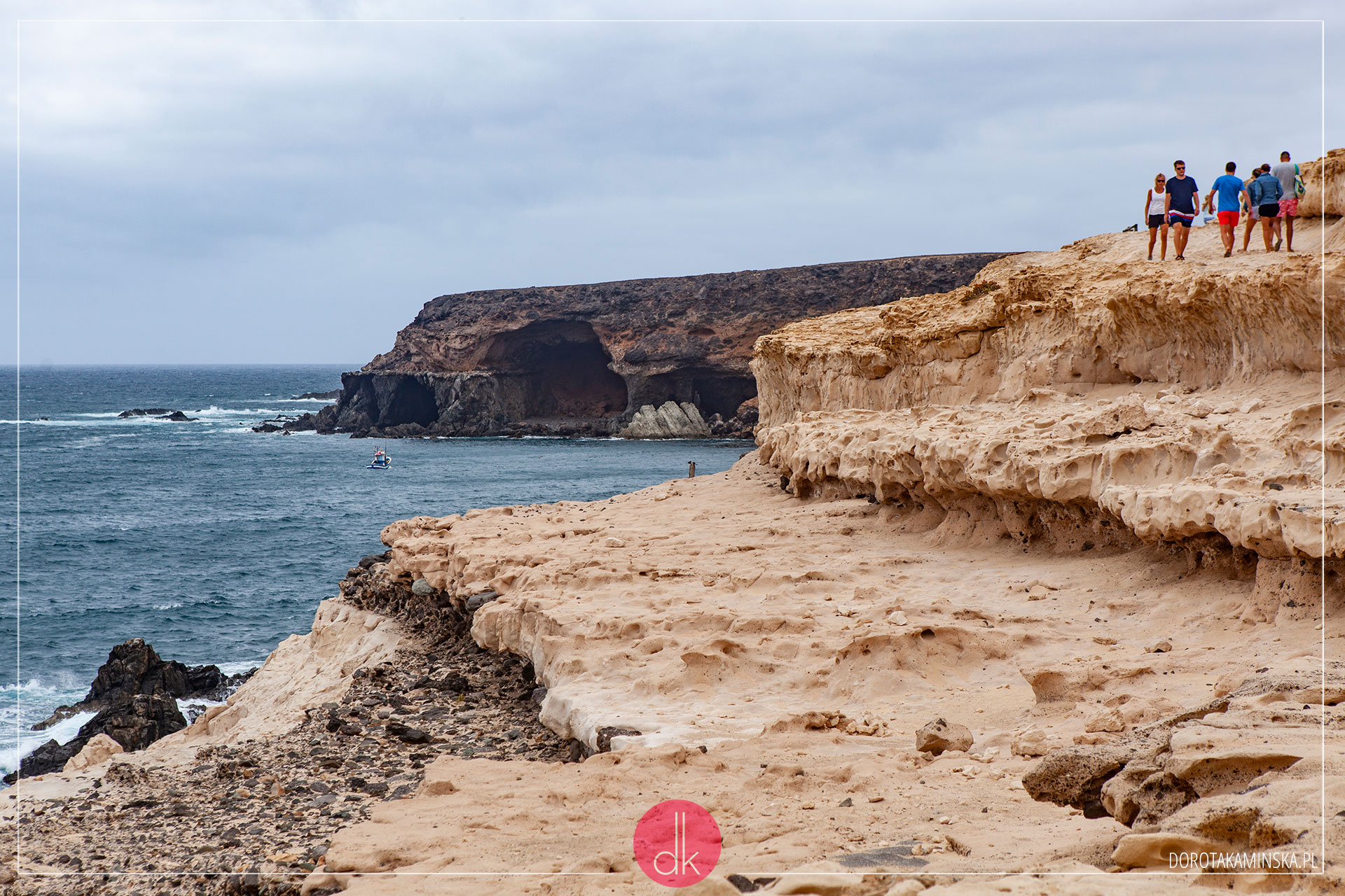 Postanowiliśmy wybrać się do Ajuy (urocza nazwa czytana jako „achuj”) i zobaczyć czarne skały z grotami. Zahaczyliśmy po drodze o plażę Sotavento: szeroką, pełną białego piasku, położoną wśród wzniesień, przez które wiedzie pieszy szlak.