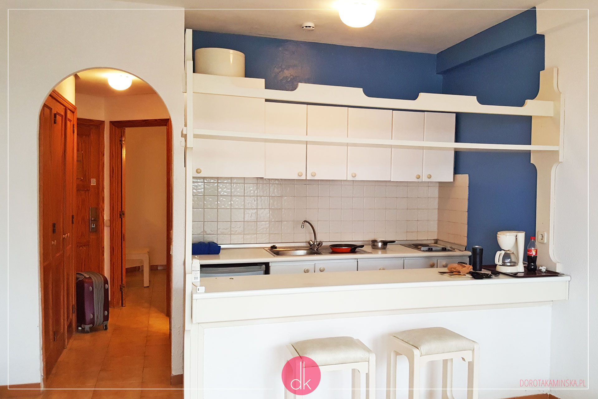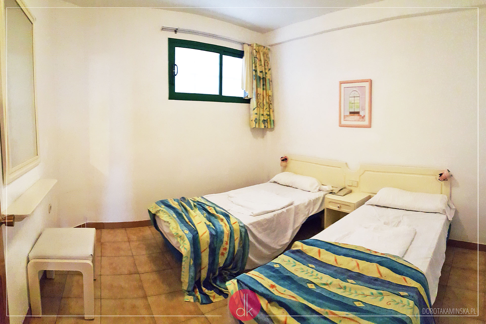 Mogę powiedzieć, że trafiliśmy na dość uniwersalny hotel Alameda de Jandia: wchodzi się do niego przez recepcję, ale potem, na wszystkich piętrach, do poszczególnych pokoi prowadzą galerie. Jest osobny poziom z restauracją i basenem, więc można przyjechać tu zarówno na wypoczynek hotelowy, jak i w celu zwiedzania autem wyspy i wracania na noc do pokoju. Cudów w wystroju nie ma, za to widok na ocean i spory taras oraz salon z aneksem kuchennym i osobna sypialnia bardzo na plus :).