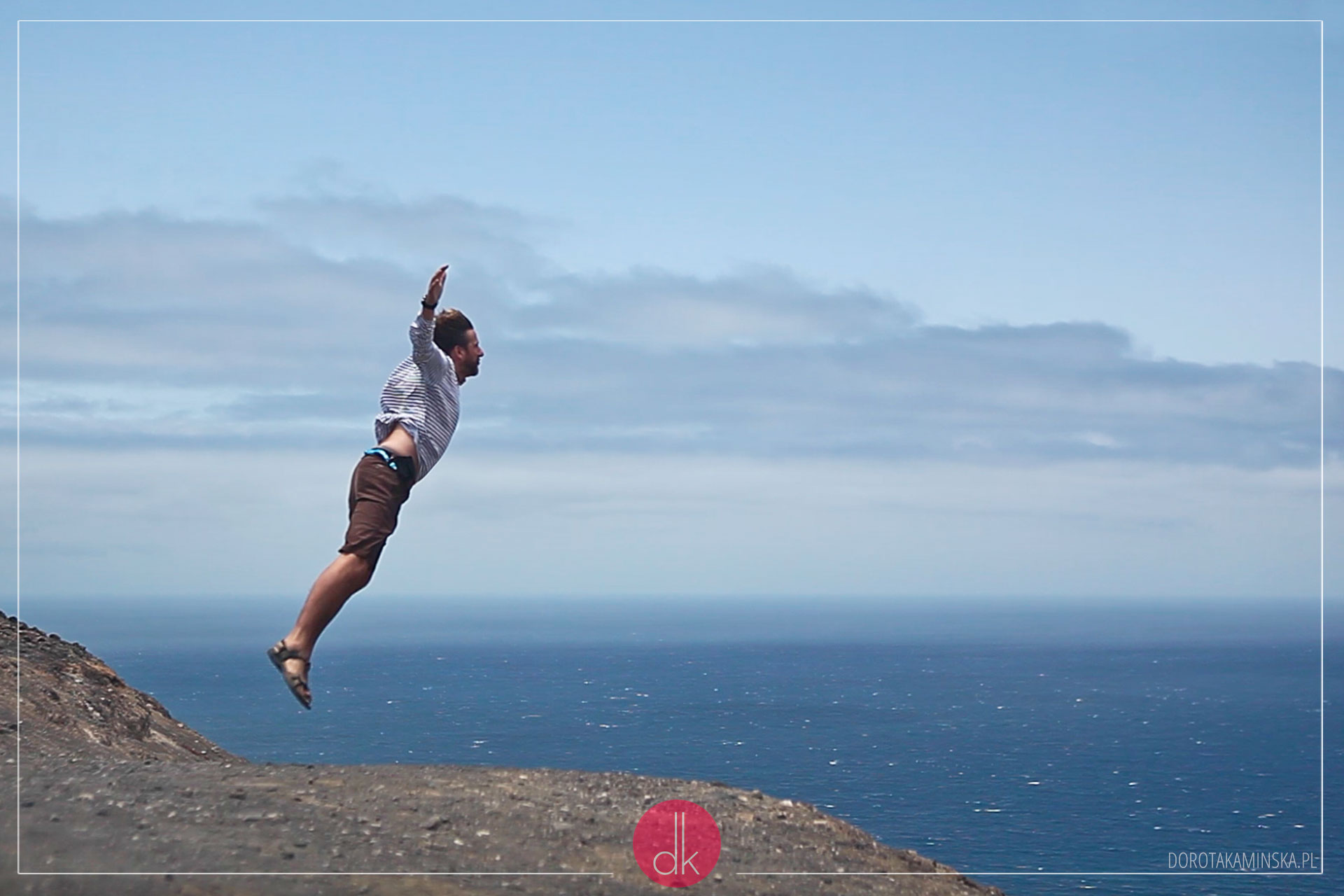Nigdy wcześniej nie zdarzyło mi się jechać autem w wietrze, który po chwili, na postoju, uniemożliwiał otwarcie drzwi! Pamiętajcie, żeby trzymać je mocno w trakcie otwierania: czasem wiatr może je blokować, innym razem z łatwością wyrwać z zawiasów. A Fuerteventura to wyspa mocnych wiatrów i ten najsilniejszy, w punkcie widokowym na plażę Cofete, wiał tak mocno, że można było próbować skoczyć z urwiska, a i tak nie było to możliwe.