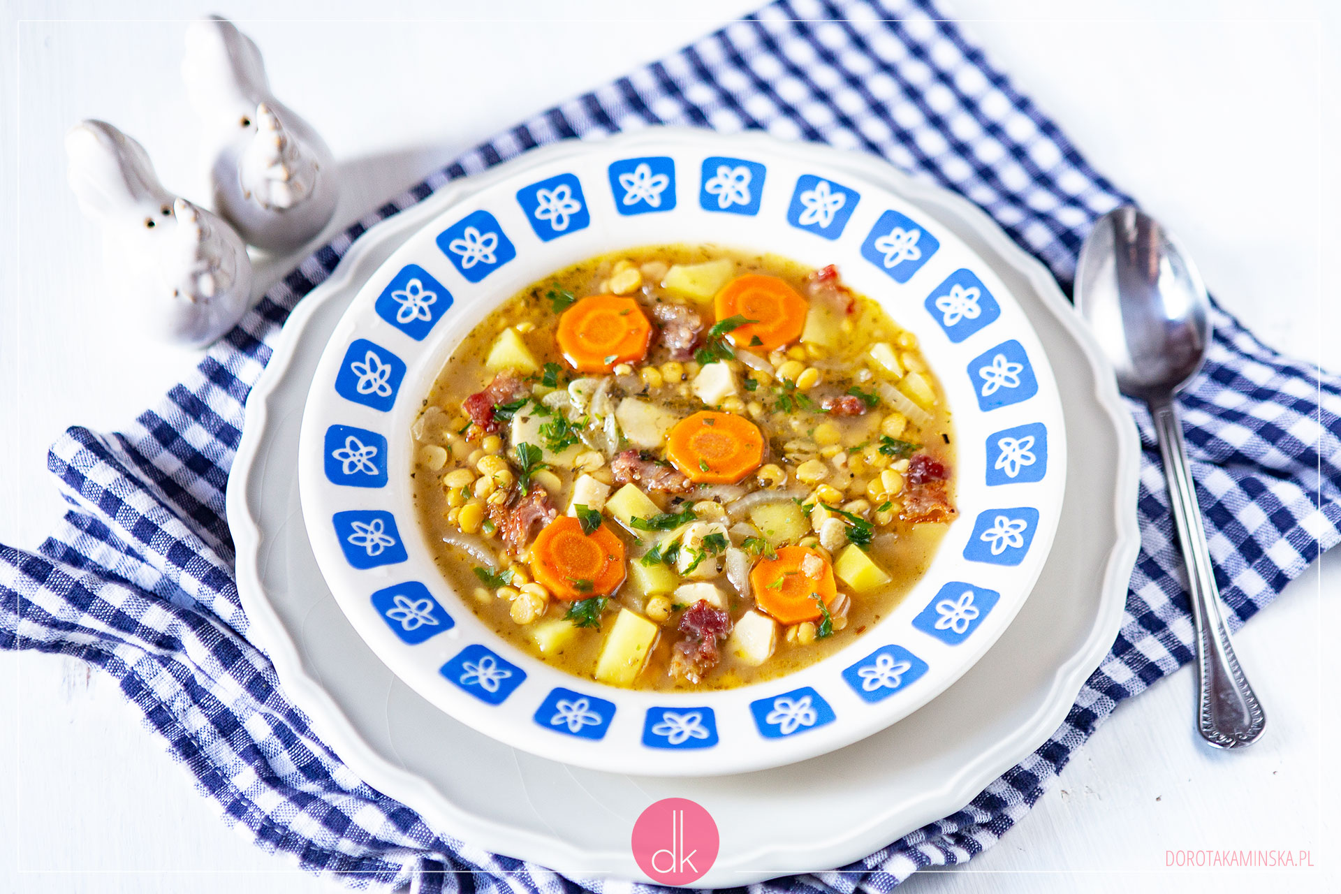 Nie wiem, dlaczego grochówka dopiero teraz zagościła w mojej kuchni. Od lat miałam w planach pokazać Wam na blogu jak zrobić grochówkę i wciąż wyprzedzały ją inne zupy. Nie znalazła się też w mojej książce Superfood po polsku, a powinna! To bardzo pożywna, bogata w składniki odżywcze zupa z grochu z warzywami oraz mięsem. Można oczywiście przyrządzić ją w wegańskiej wersji i gorąco zachęcam Was do eksperymentowania. Jest doprawiona pachnącym majerankiem oraz kminkiem, anyżem i kolendrą. Może to lekkie odejście od klasycznego składu, ale zapewniam, że warto spróbować ugotować ją z tymi przyprawami!