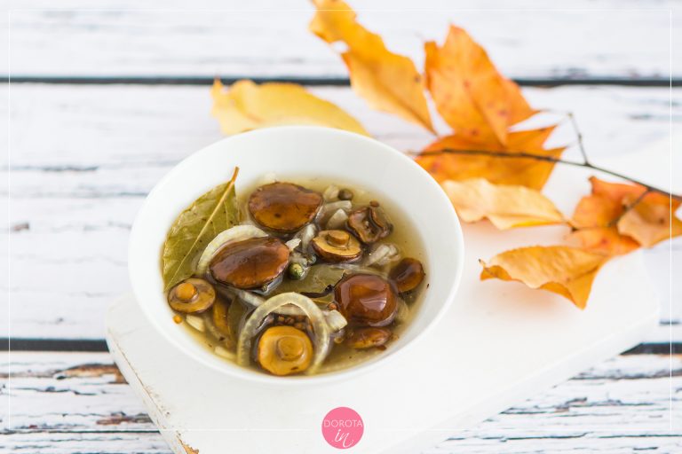 Grzyby marynowane to jeden ze smaków mojego dzieciństwa. Od zawsze uwielbiałam marynowane opieńki, ale też inne grzybki marynowane jadłam równie chętnie. Po części dlatego, że co rok jeździliśmy całą rodziną na grzyby i miło spędzaliśmy wspólnie czas. Również w naszym lesie niedaleko domu udawało nam się czasami trafić na miejsca obfitujące w grzyby. Przepis na grzyby marynowane to receptura bardzo prosta i poradzi sobie z nią nawet początkujący kucharz. Późną jesienią i zimą, albo przez cały rok, można cieszyć się ich smakiem, bo to doskonała imprezowa przekąska lub składnik sałatek. Zobaczcie jak zrobić marynowane grzybki krok po kroku.