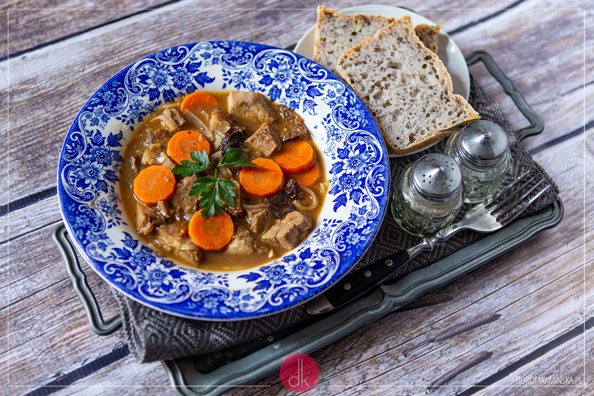 - Gdy wieprzowina zmięknie (do sprawdzenia widelcem), można dodaś sok z cytryny, wymieszać i serwować, np. z chlebem, kluskami lub gotowanym ryżem czy kaszą.