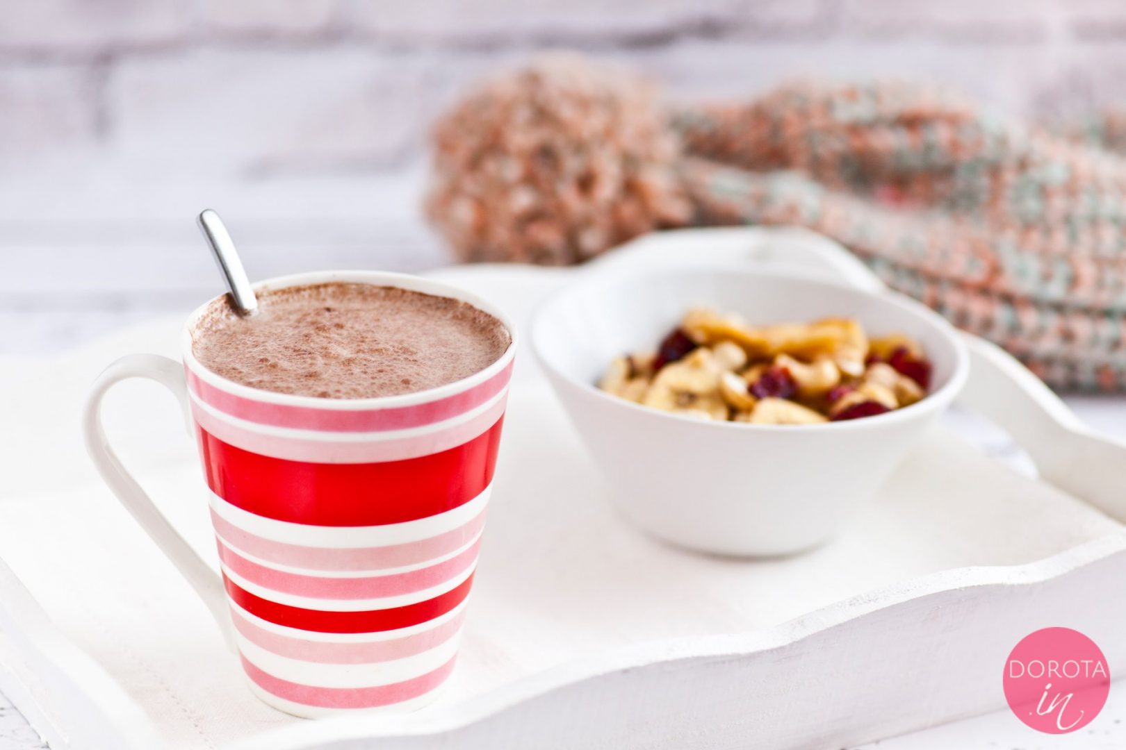 O wiele lepiej, prościej, ze sprawdzonym składem i taniej będzie przygotować kakao domowe. Jako baza wystarczy gorzkie kakao w proszku – postawcie jednak na dobry smak, który już znacie, bo jedne drugim nierówne i np. kakao alkalizowane, moim zdaniem, nie nadaje się do poniższej mieszanki – jest wyczuwalne i smakuje inaczej. Nie każdemu przypadnie do gustu. A dodatkowo, do smaku – to, co lubicie najbardziej. Można zaszaleć z bitą śmietaną lub syropami, a nawet dorzucić pianki marshmallows, jednak pamiętajcie, że to są dodatkowe kalorie – raz na jakiś czas, na specjalną okazję – tak, można. Na co dzień lepiej i bezpieczniej wykorzystać prostsze dodatki: wanilię, cynamon, a może trochę chili?
