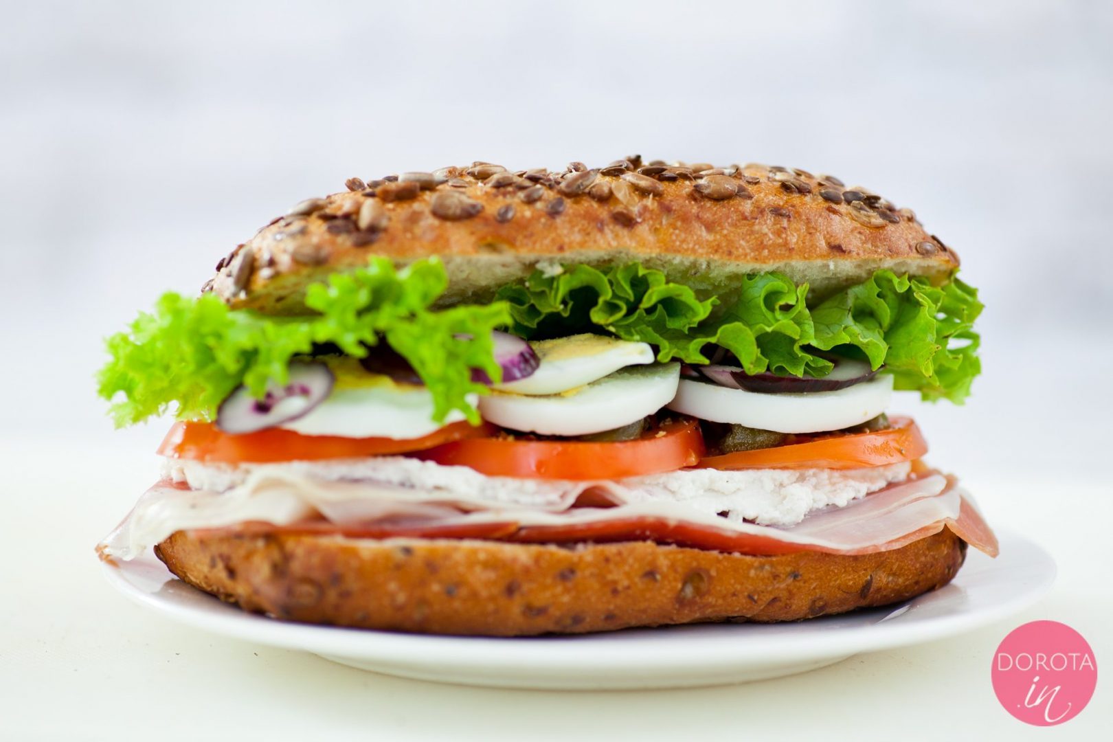 - Przykrywam całość górną połową bułki i serwuję kanapkę.