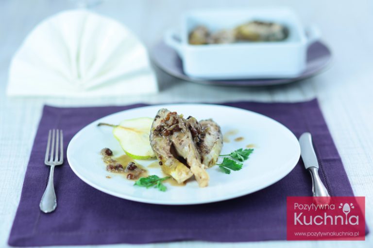 • Delikatnie wyjmujemy rybę i przekładamy na talerze, a do sosu dodajemy rodzynki i odparowujemy, żeby się lekko zredukował.