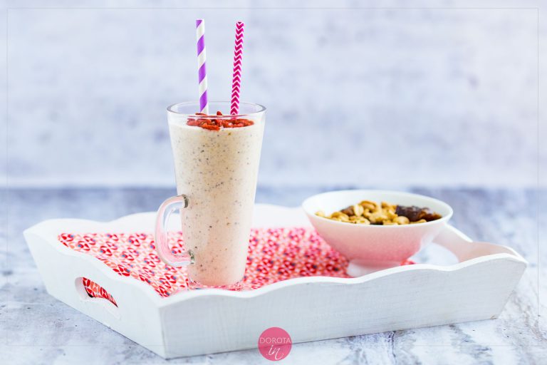 To bardzo pożywny koktajl na śniadanie lub deser w wersji fit, dodatkowo jest bogaty w witaminy i minerały. Ma dużo kalorii, ale to kalorie dobre do wypicia po treningu, a do tego dużo tu tych pochodzących z roślinnych tłuszczów. W wersji na słodko i deserowo można udekorować koktajl z bakaliami bitą śmietaną kokosową. Co Wy na to?