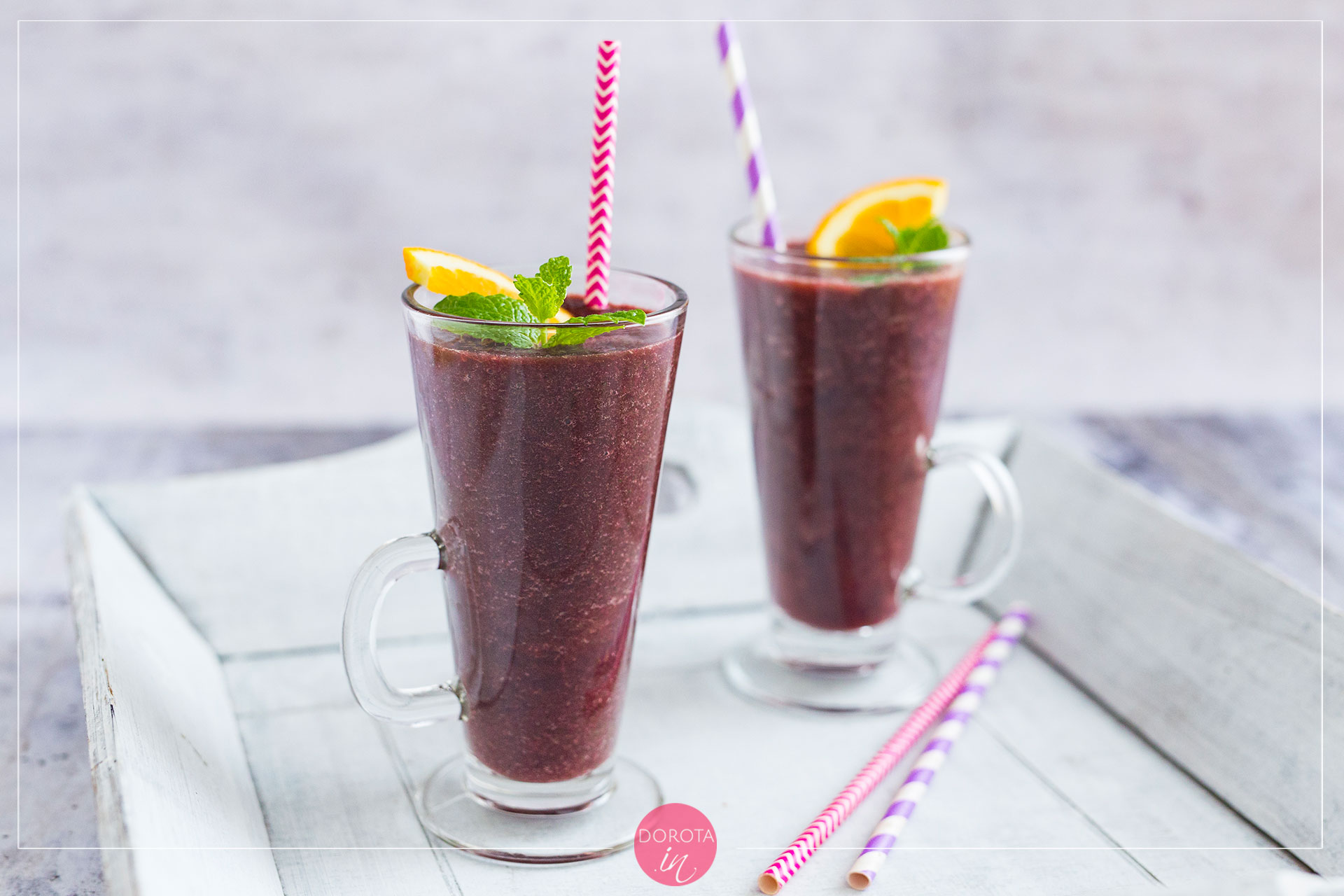 - Podaję koktajl z botwinki udekorowany plasterkami pomarańczy i listkami świeżej mięty.