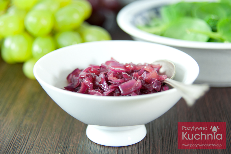 bardzo interesujacy dodatek. nie probowalam nigdy robic tego z czerwonej cebuli,ale z bialej, do ktorej dodaje pod koniec smazenia lyzke miodu i sosu sojowego. ma lekko slodkawy karmelowy smak… w rodzinie lubimy serwowac to z pieczenia.