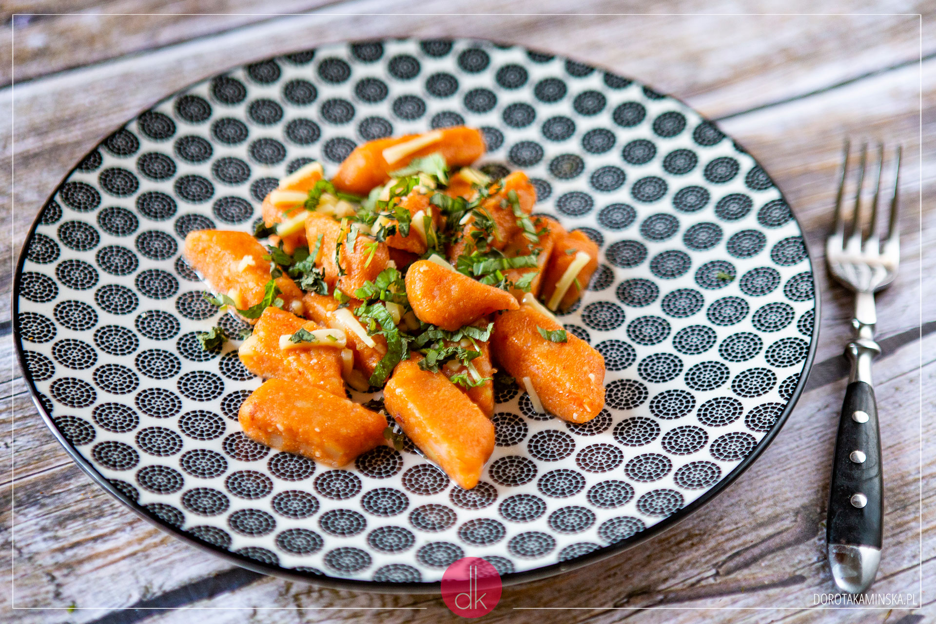 Kopytka z papryką to kolejny obiad przygotowany niedużym kosztem. Jeśli przyrządza się je z pozostałych po obiedzie z poprzedniego dnia ziemniaków i upieczonej na zapas papryki, można przygotować całość w ok. 30 minut. Bardzo lubię kopytka za to, że łatwo się je wykrawa z jednego większego rulonu ciasta. Nie trzeba kulać ręcznie, choć oczywiście można nadać im kształt widelcem. To włoski sposób na to, żeby lepiej przylegał do nich podczas serwowania sos. Zobaczcie jak zrobić kopytka z papryką krok po kroku.