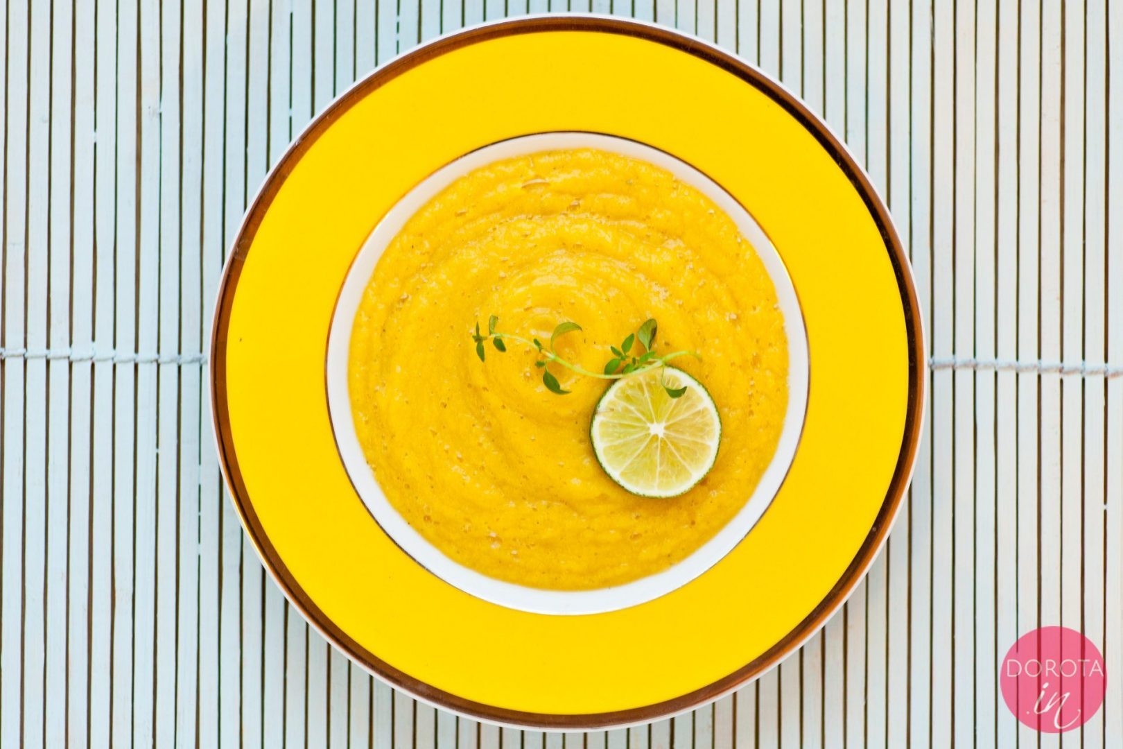 - Dodaję mleko kokosowe lub śmietankę kremówkę, doprawiam do smaku solą i pieprzem oraz sokiem z limonki, miksuję całość za pomocą blendera odpornego na działanie wysokich temperatur - ręcznego lub kielichowego.