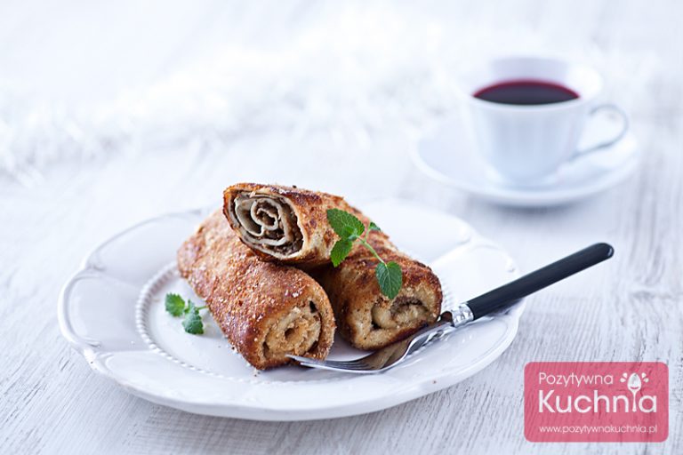 - Na każdym naleśniku rozsmarowuję dokładnie cienką warstwę farszu i zawijam krokiety.