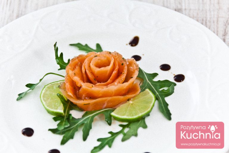 Można zaserwować w większych kawałkach albo pokroić w cienkie paski. Spróbujcie ułożyć różę z łososia. Pięknie prezentuje się na talerzu!