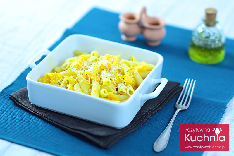 Makaron z dynią bardzo dobrze skomponuje się też w formie lasagne, zapieczony odpowiednio długo w żaroodpornym naczyniu w piekarniku.