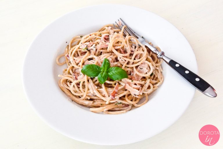 Makaron z szynką i mascarpone przygotowałam dziś z resztek składników, które znalazłam w lodówce. Przepis na makaron z szynką i mascarpone to wyjątkowo prosta receptura. Moja kuzynka pokazała dziś na Facebooku zdjęcie ugotowanego makaronu z dołączonym komentarzem: „Wigilia. Dzień, w którym wieczorem muszę ugotować makaron, żeby moje dziecko nie poszło spać głodne”. I coś w tym jest, że dzieciaki niekoniecznie lubią wigilijne potrawy. Pamiętam, że sama najchętniej jadałam pierogi ruskie ;). Potem pokochałam barszcz z uszkami. Dopiero po wielu latach doceniłam karpia, rybę po grecku czy pierogi z grzybami i kapustą. Dlatego dziś coś dla niejadków. Makaron z sosem z mascarpone z szynką. Trochę z przymrużeniem oka. Jak zrobić makaron z szynką i mascarpone? Jest naprawdę prosty do zrobienia. Wyjdzie Wam całkiem smaczny obiad lub kolacja.