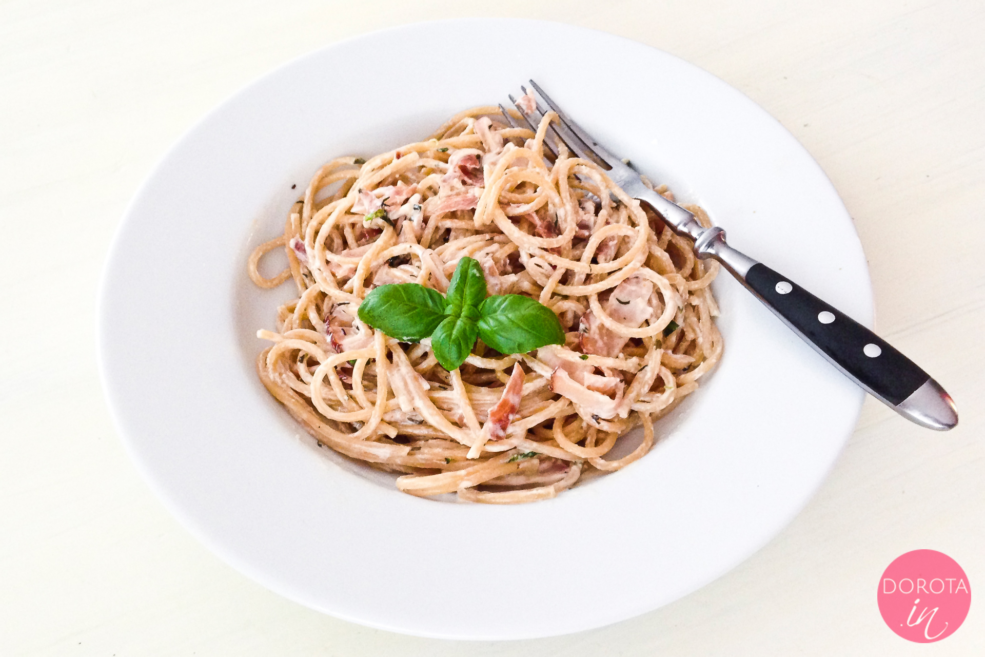 Makaron z sosem z mascarpone z szynką na obiad lub kolację