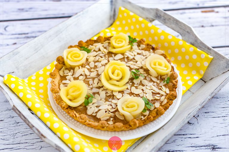 To chyba jeden z prostszych i jednocześnie najbardziej efektownych wypieków na Wielkanoc: mazurek jabłkowy. Nie wiem, czemu dopiero teraz wpadłam na pomysł, że można byłoby upiec zwykły, kruchy spód, potem posmarować go pysznym dżemem jabłkowym i udekorować migdałami w płatkach oraz różyczkami z podduszonych, pokrojonych wcześniej w półksiężyce jabłek. Tak niewiele trzeba, żeby osiągnąć zaskakujący efekt. Zobaczcie jak zrobić mazurek z jabłkami.