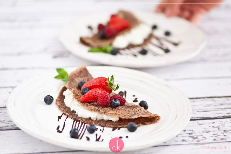Naleśniki gryczane zagościły w mojej kuchni, gdy na pewien czas całkowicie zrezygnowałam z potraw zawierających gluten. Przygotowane na bazie mąki gryczanej, są zdrowszą wersją tych klasycznych, z mąką pszenną. Można przygotowywać je na słodko oraz wytrawnie. Są dość ciemne i smaczne, choć nie ukrywam, że trzeba się trochę przestawić i nie spodziewać typowego, pszennego smaku. Polecam zacząć od słodkich, ze świeżymi owocami. Będzie o wiele łatwiej i myślę, że je polubicie. Zobaczcie jak zrobić naleśniki z mąki gryczanej.