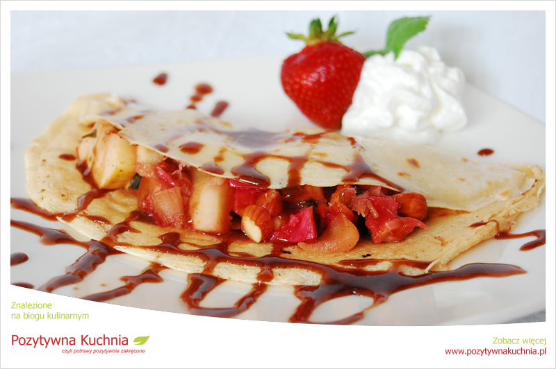 Rabarbar świetnie komponuje się z jabłkami i truskawkami, a wzbogacony aromatem cytryny i wanilii pozwala w pełni wydobyć swój charakterystyczny smak. Kwaskowatość zrównoważona słodyczą. Chrupkość połączona z miękkością. Magia zapachu prażonych jabłek i cynamonu, które kojarzą mi się z zimowymi aromatami, zaczarowana wiosennym, cytrusowym aromatem i smakiem rabarbaru, który niebawem zagości też w dżemach i ciastach. Wiosenne naleśniki z rabarbarem, które zwiastują nadejście długo wyczekiwanego lata.