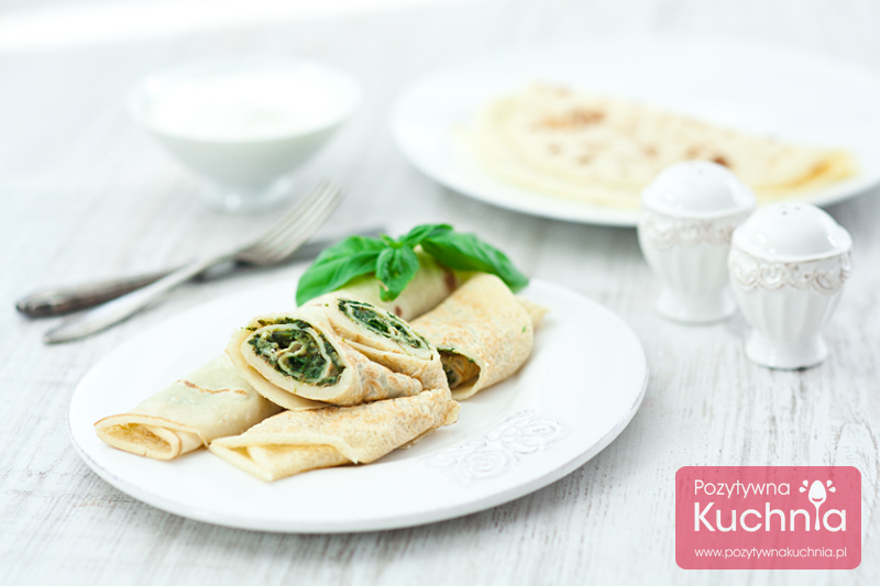 Wytrawne naleśniki ze szpinakiem wegetariańskie czyli przepis na naleśniki ze szpinakiem, serem, cebulą i czosnkiem.