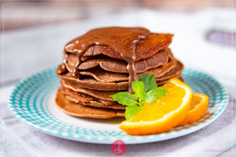- Pancakes czekoladowe wegańskie – można przygotować tak jak pancakes bez jajek, zastępując mleko krowie mlekiem roślinnym, np. kokosowym lub sojowym i smażąc całość na oleju roślinnym.