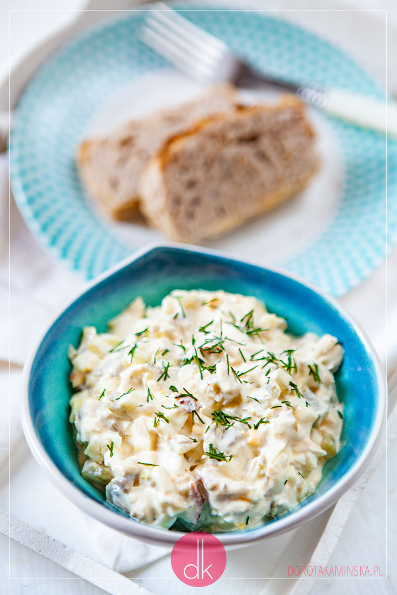 - 2 ogórki kiszone (małe; pokrojone w drobną kostkę; można zastąpić ogórkami konserwowymi lub kiszoną papryką)