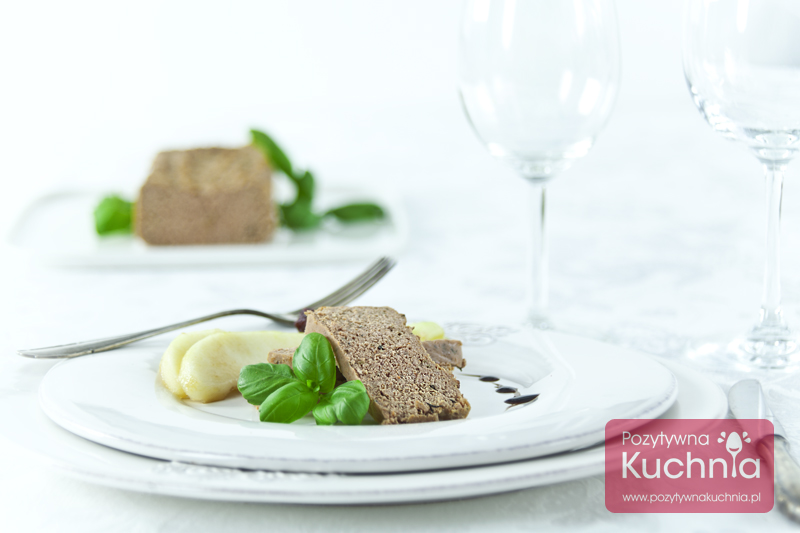 Odświętnie można podać pokrojony w plastry, udekorowany konfiturą z czerwonej cebuli lub dojrzałą gruszką, z dodatkiem suszonej żurawiny i sosu balsamico. Bardzo mało skomplikowana, a jednocześnie elegancka i ciekawa kompozycja smaków. Z pewnością zachwyci podniebienie niejednego miłośnika pasztetów.