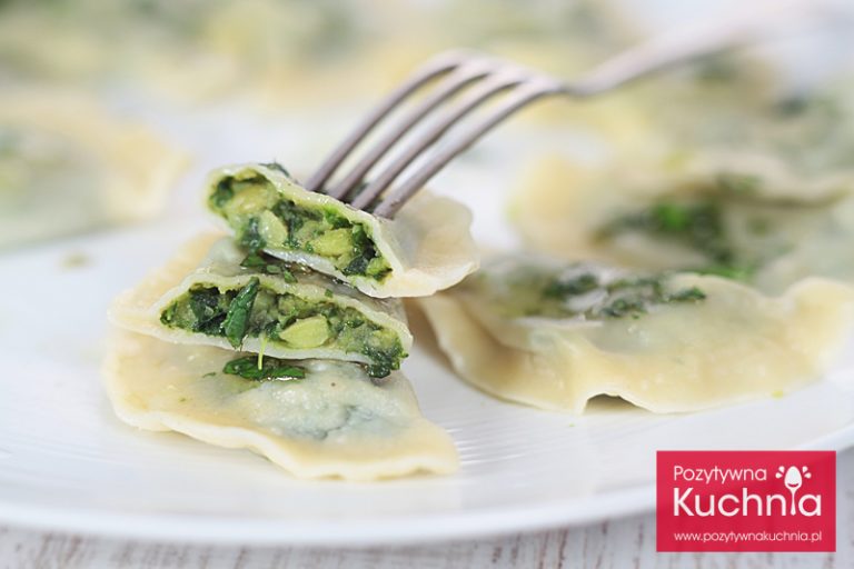 Pierogi z bobem przygotowane z cienko rozwałkowanego ciasta, kryją w środku piękny, zielony, bardzo smakowity farsz. Przepis na pierogi z bobem według mojego pomysłu to dodatek szpinaku, białego pieprzu i suszonego tymianku. Polane oliwą z oliwek z dodatkiem siekanej mięty, zaskoczą nas niezwykle ciekawym smakiem. Zobaczcie jak zrobić pierogi z bobu krok po kroku. To pomysł na pyszny, letni obiad bez mięsa, za to pełen smaku i korzystnych dla zdrowia składników odżywczych.