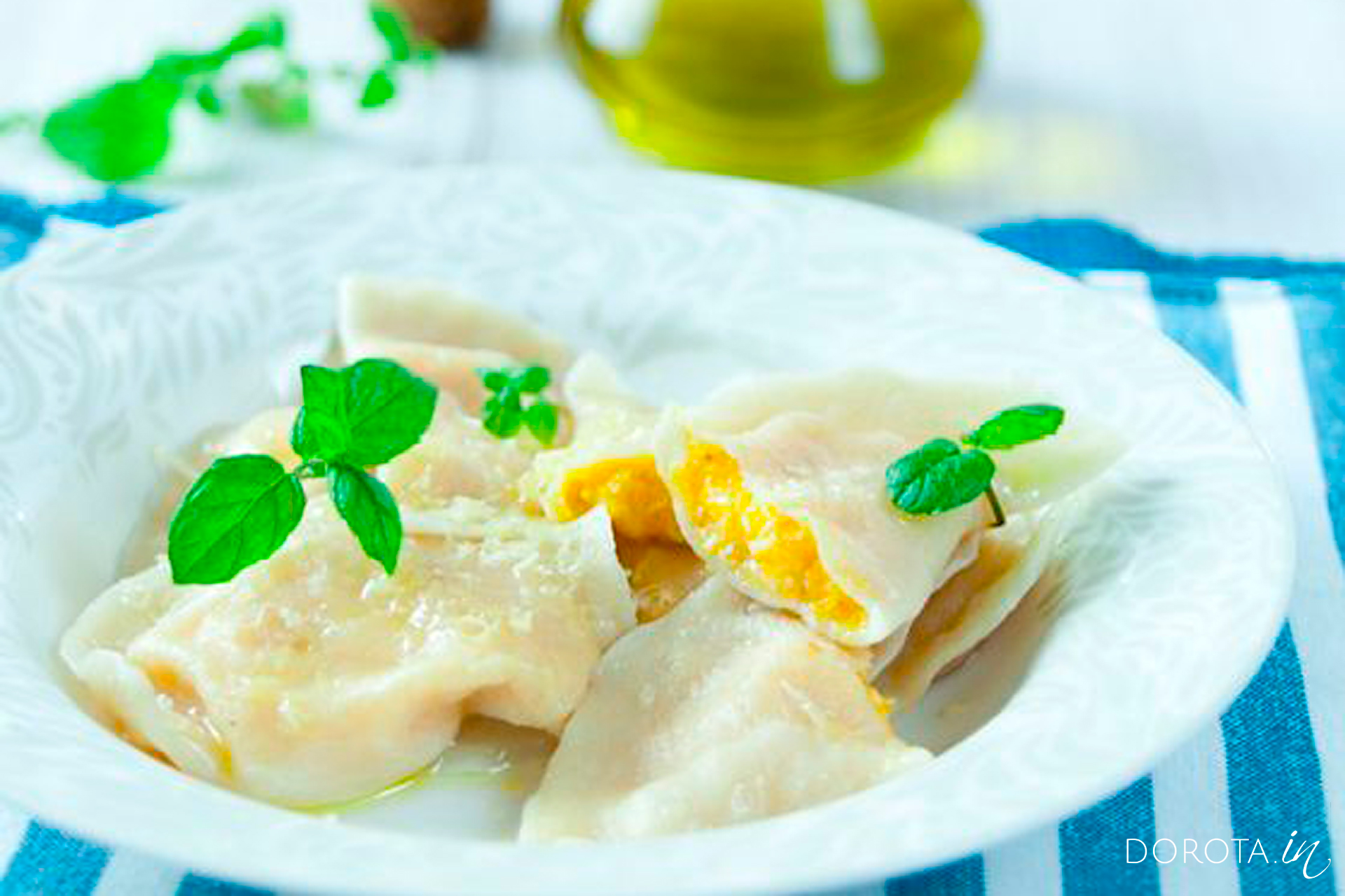 Sama dynia jest tu wyjątkowo ważnym składnikiem: jeśli będzie zbyt wilgotna, trudno będzie nadziewać pierogi farszem i sklejać. Najlepiej wybrać dynię piżmową lub hokkaido, której konsystencja, po ugotowaniu, przypomina gotowane ziemniaki. Jako dodatek do farszu świetnie pasuje parmezan lub ricotta, ale zwykły, biały ser również sprawdzi się jako jeden ze składników.